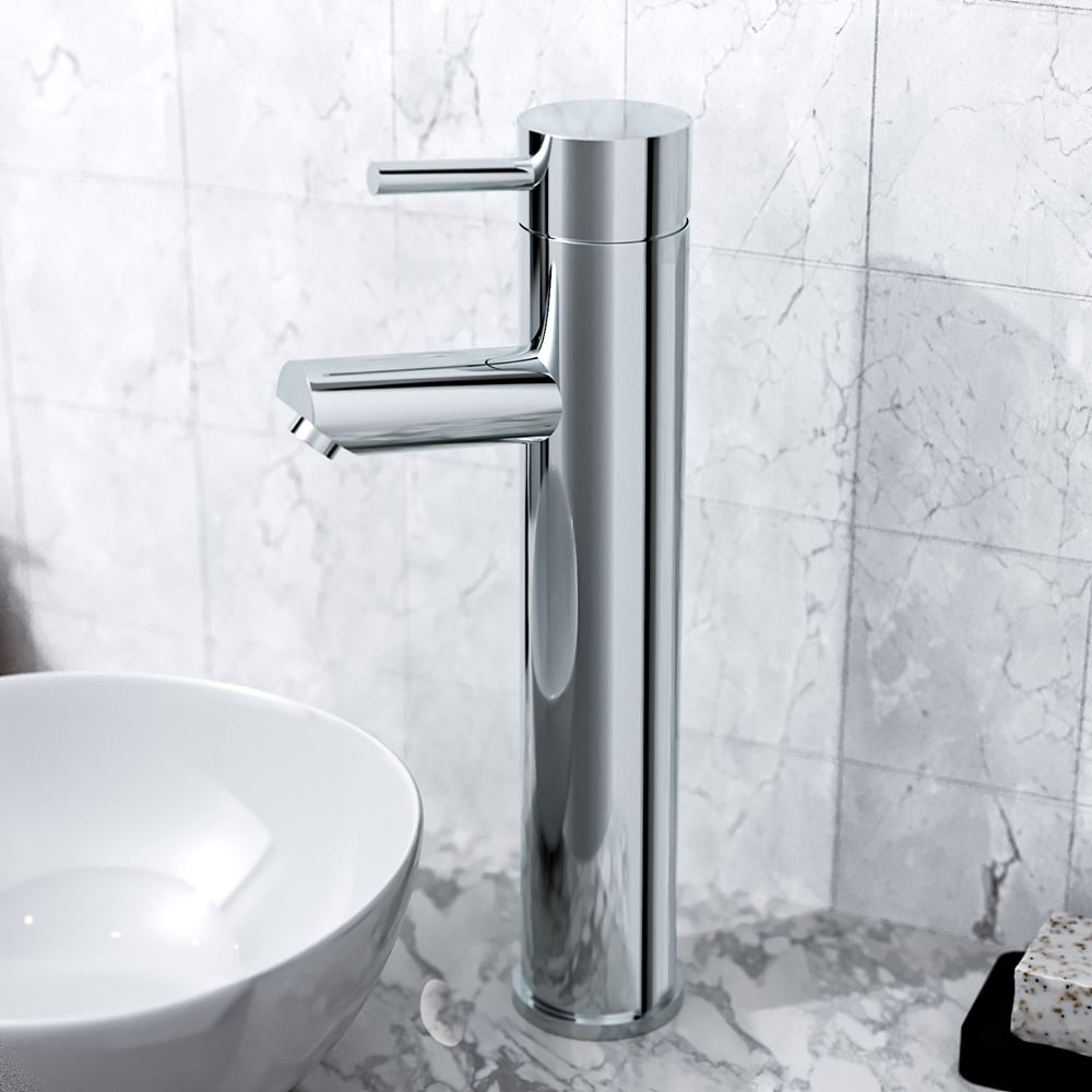 Elevate your bathroom décor with this sleek, tall faucet featuring a modern cylindrical design and polished chrome finish. Its single-lever handle allows for effortless water control, while the included pop-up drain adds a coordinated, contemporary touch. Crafted from durable materials to resist rust and corrosion, this faucet is the perfect blend of style and functionality for a refined bathroom upgrade.