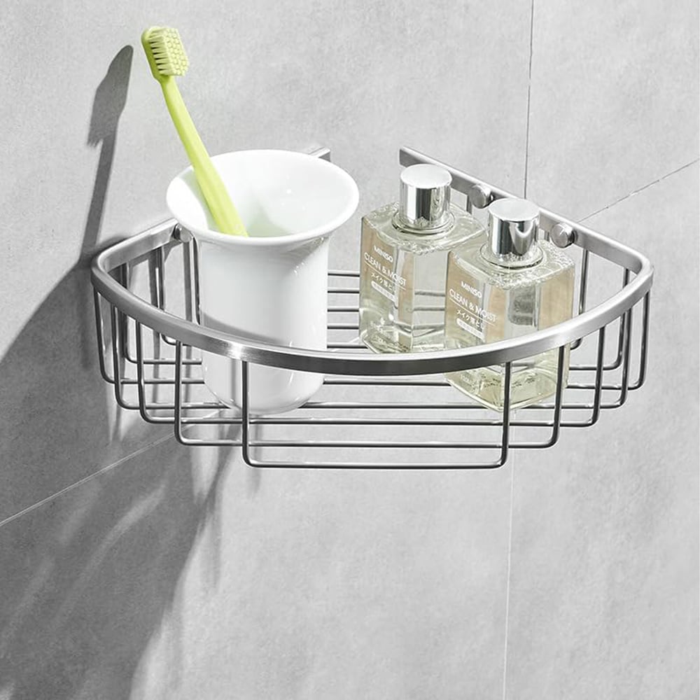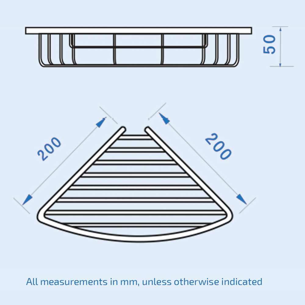 This single-corner wired shower basket features a rounded design and securely mounts in the corner for optimal space-saving. Easy to install, it offers generous storage for your essential toiletries and boasts an aesthetically pleasing look with its rounded theme.