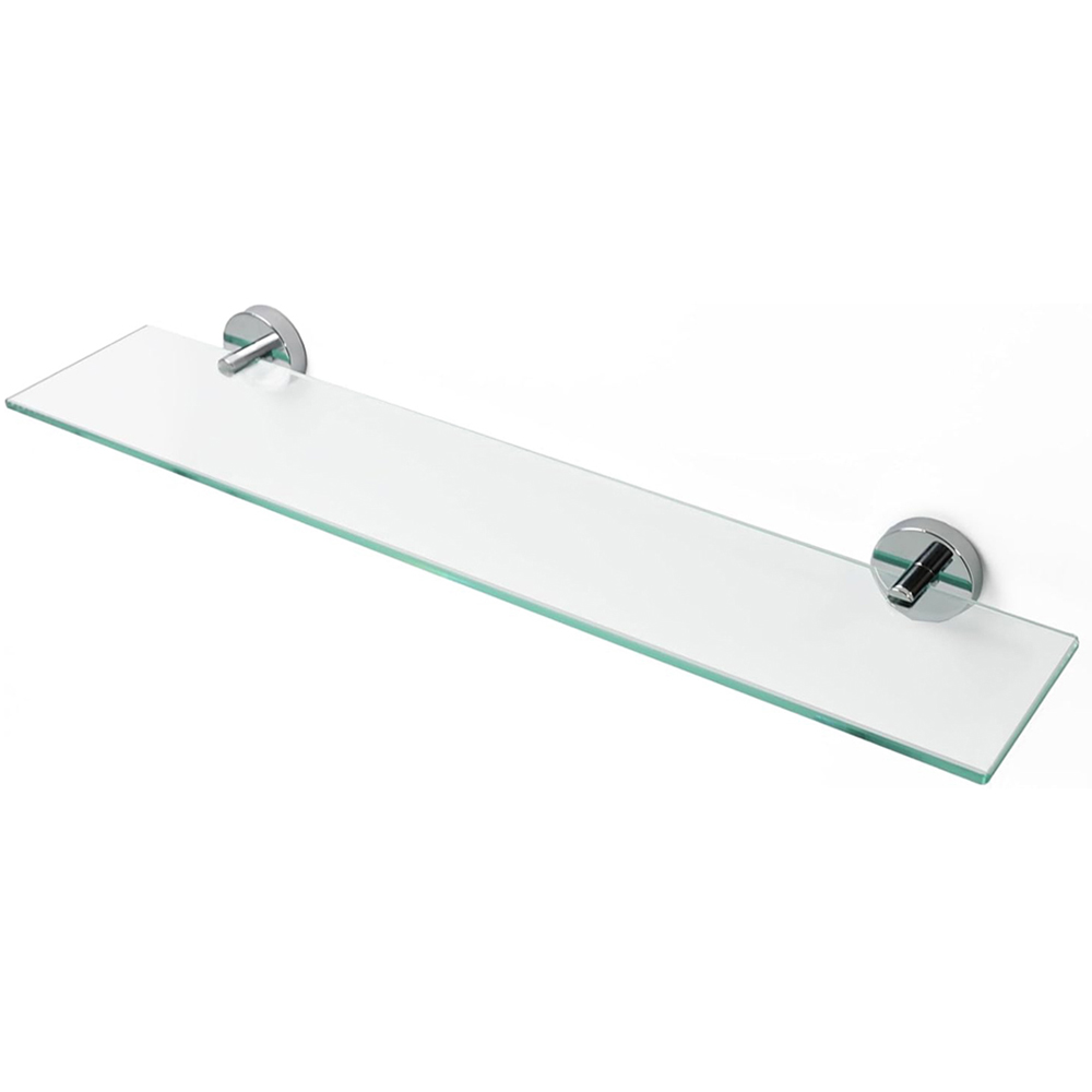Nes Home Single Shelf Clear Glass Bathroom Rack with Round Chrome Brackets