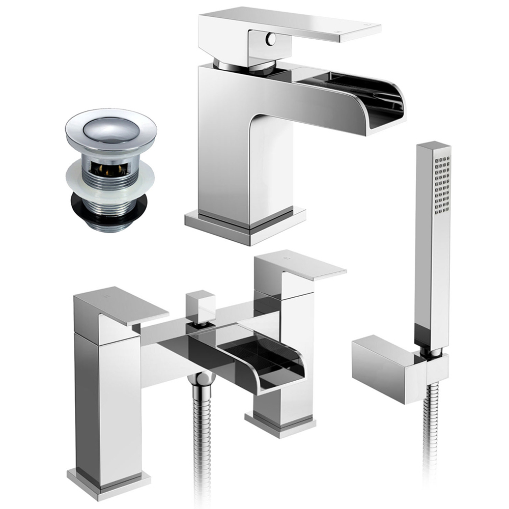Nes Home Waterfall Chrome Bath Shower Mixer and Cloakroom Tap with Waste