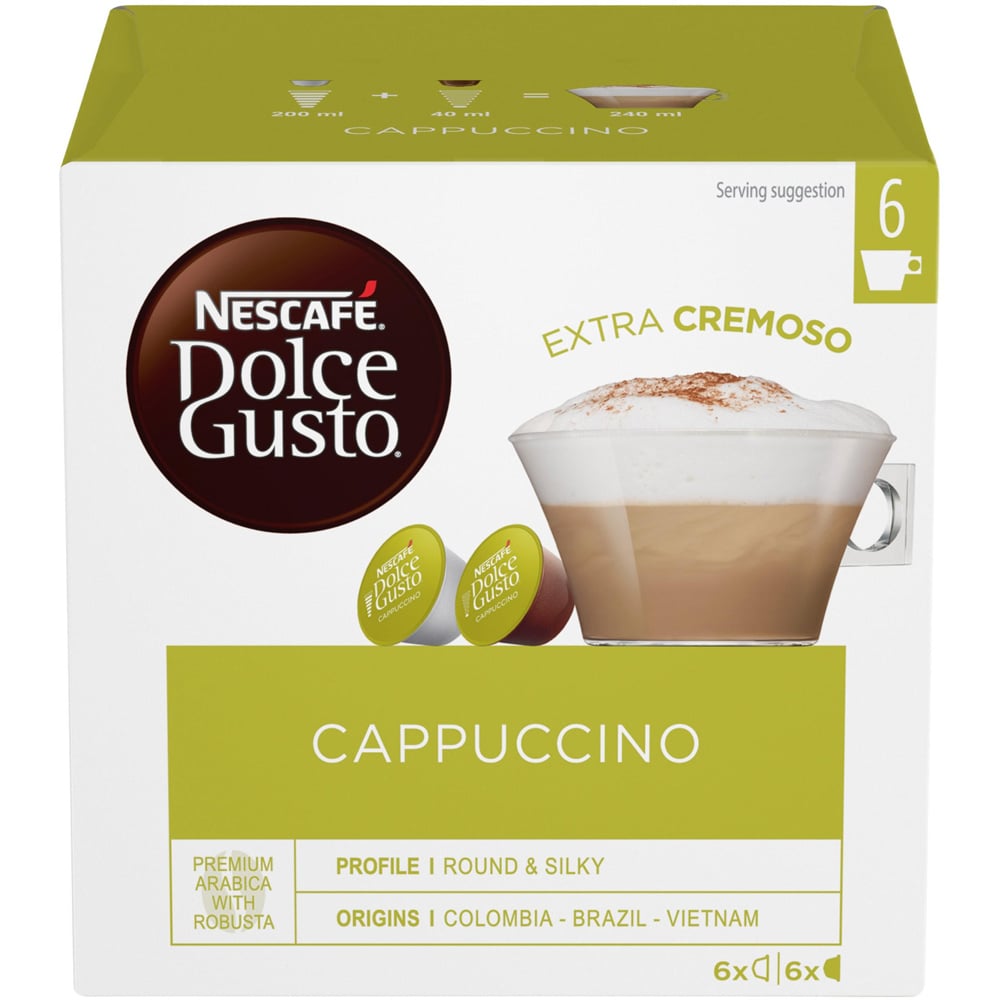The Rich And Bold Aromas Of An Intense Espresso Meet The Smooth Taste And Frothy Texture Of Whole Milk Discover Nescafé® Dolce Gusto® Cappuccino, An Italian Icon. The Rich And Bold Aromas Of An Intense Espresso Meet The Smooth Taste And Frothy Texture Of Whole Milk. The Box Contains 12 Pods (6 Coffee Pods And 6 Milk Pods) Designed For Nescafé® Dolce Gusto® Pod Coffee Machines For You To Prepare 6 Mugs Of Cappuccino.. Nescafé Dolce Gusto Cappuccino. Italian Frothy Drink. Smooth Taste And Frothy Texture Of Whole Milk. Rich And Bold Aromas Of An Intense Espresso. Nescafe.