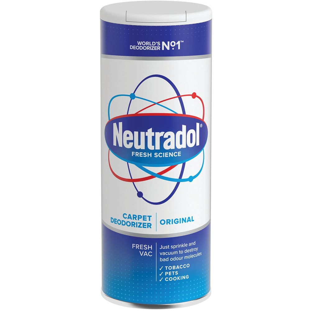 Keep your home clean and smelling fresh with the brilliant Carpet Powder from Neutradol. It is the perfect addition in your home, keeping your carpets smelling fresh. It actively deodorises and destroys bad odours, leaving a super fresh scent in your home. It also works in refuse bins and is great for those with pets or children.