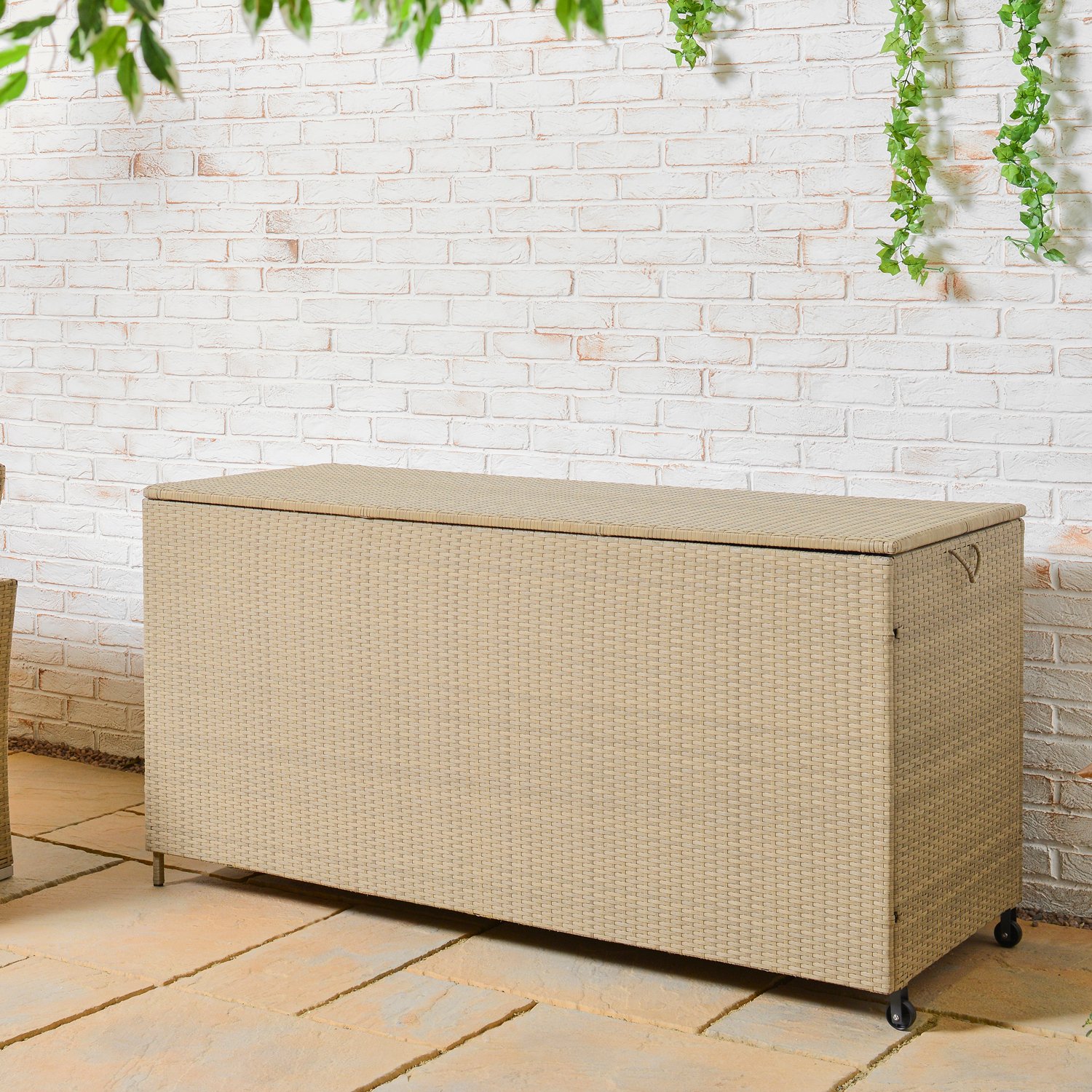 The perfect place to store your garden furniture cushions, this New Hampshire Cushion Box is the ideal accessory for your patio set. A beautiful, sleek design, this amazing rattan style box features rolling wheels so you can transport it around your garden easily and has plenty of space inside to pack away cushions and other items, ready for storage when not in use. Easy to open and close, this is sure to be a great addition to your garden and perfectly complements the New Hamsphire Corner Dining Set.