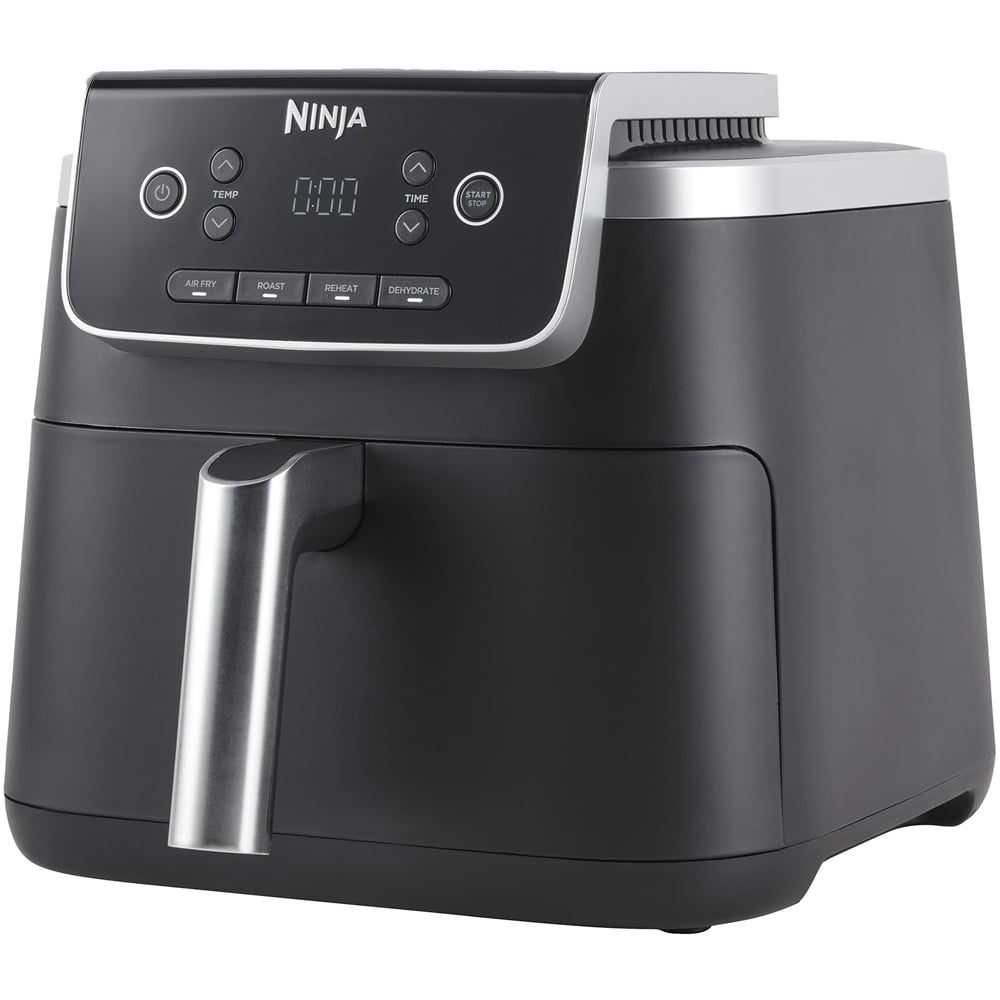 Get crispy results every time with the Ninja Air Fryer PRO, quickly cooking your favourite foods using little to no oil. Perfectly sized for one or two people. AirCrisp Technology rapidly surrounds food with superheated air for hot, crispy results every time – and it uses less energy than an oven. A removable crisper plate ensures air circulates evenly around your food for 360° crisping. Features four cooking functions- Air Fry, Roast, Reheat and Dehydrate. Air Fry a healthier version of your fried favourites - up to 75% less fat than traditional frying methods. Experiment with everyday dishes or try something totally new. Roast everything from crispy potatoes and root vegetables to a whole 1kg roast chicken. Dehydrate sliced fruit, vegetables, and more to create healthy homemade snacks and garnishes. Reheat leftovers to restore that just-out-of-the-oven texture and taste, without sogginess.