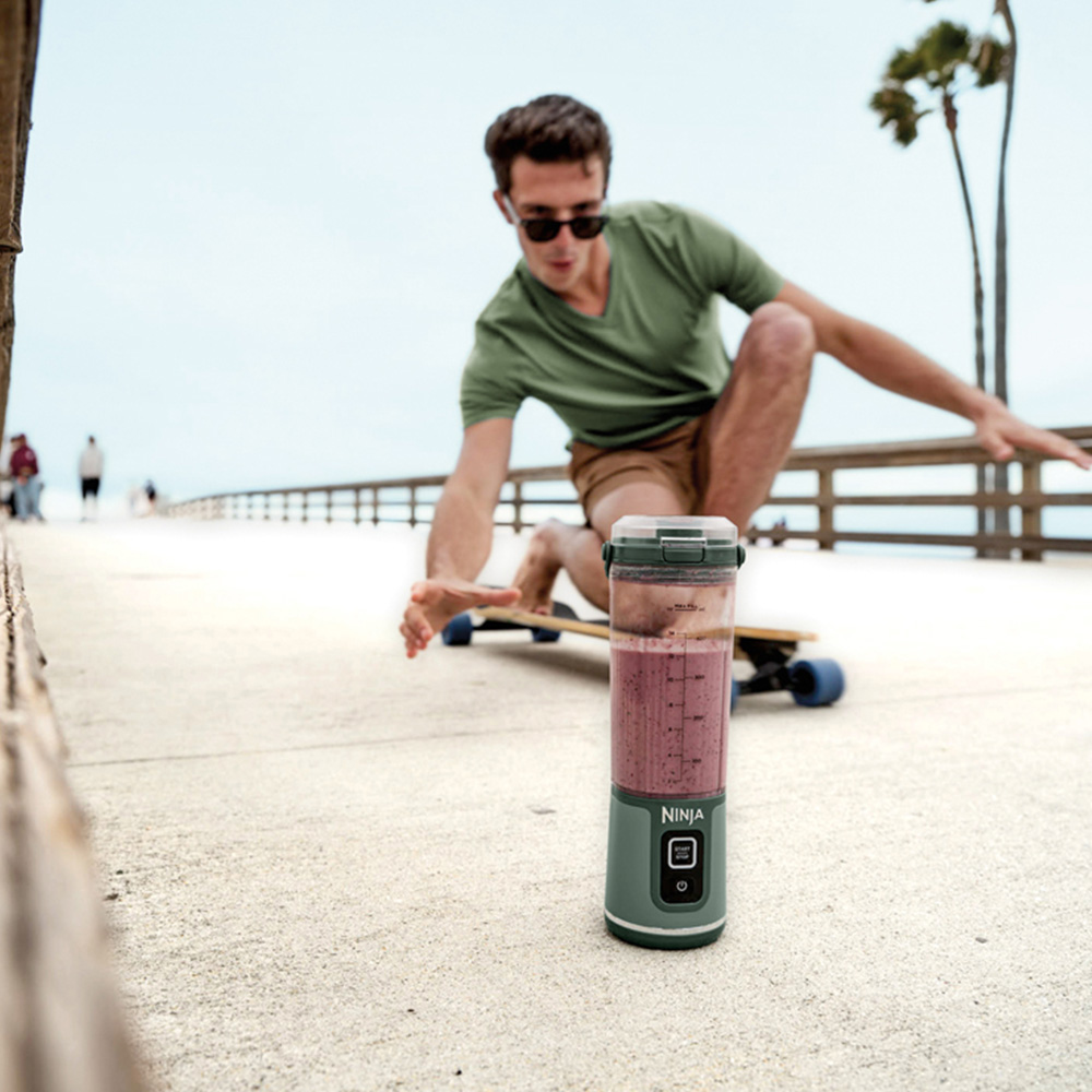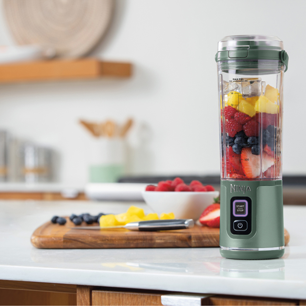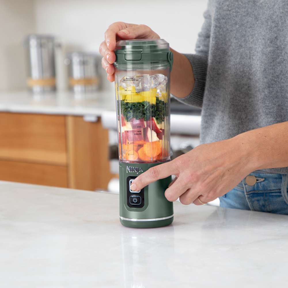 Blend on the go with the Ninja Blast BC151UKWH Forest Green 530ml Cordless Portable Blender. This ultra-compact, quiet blender is USB-C rechargeable, delivering over 10 blends on a single 2-hour charge. With Ninja Blast Technology, it powers through frozen ingredients, creating smoothies, protein shakes, iced cocktails, and more with ease. The ribbed cup and stainless steel Blastblade ensure smooth, consistent results every time. Leak-proof and portable with a hinged carry handle, this blender is perfect for workouts, travel, or outdoor gatherings. The BPA-free cup and lid are dishwasher safe. It includes a 2-year guarantee for added peace of mind. Use and Care: Simply add the cup and blade covers after blending for safe storage. For easy self-cleaning, just add water and a drop of washing-up liquid and run a 30-second blend cycle.