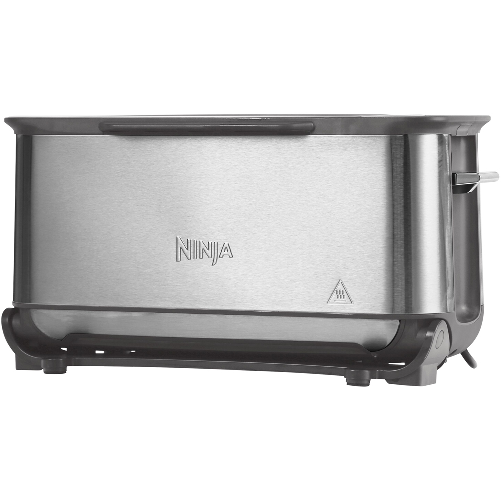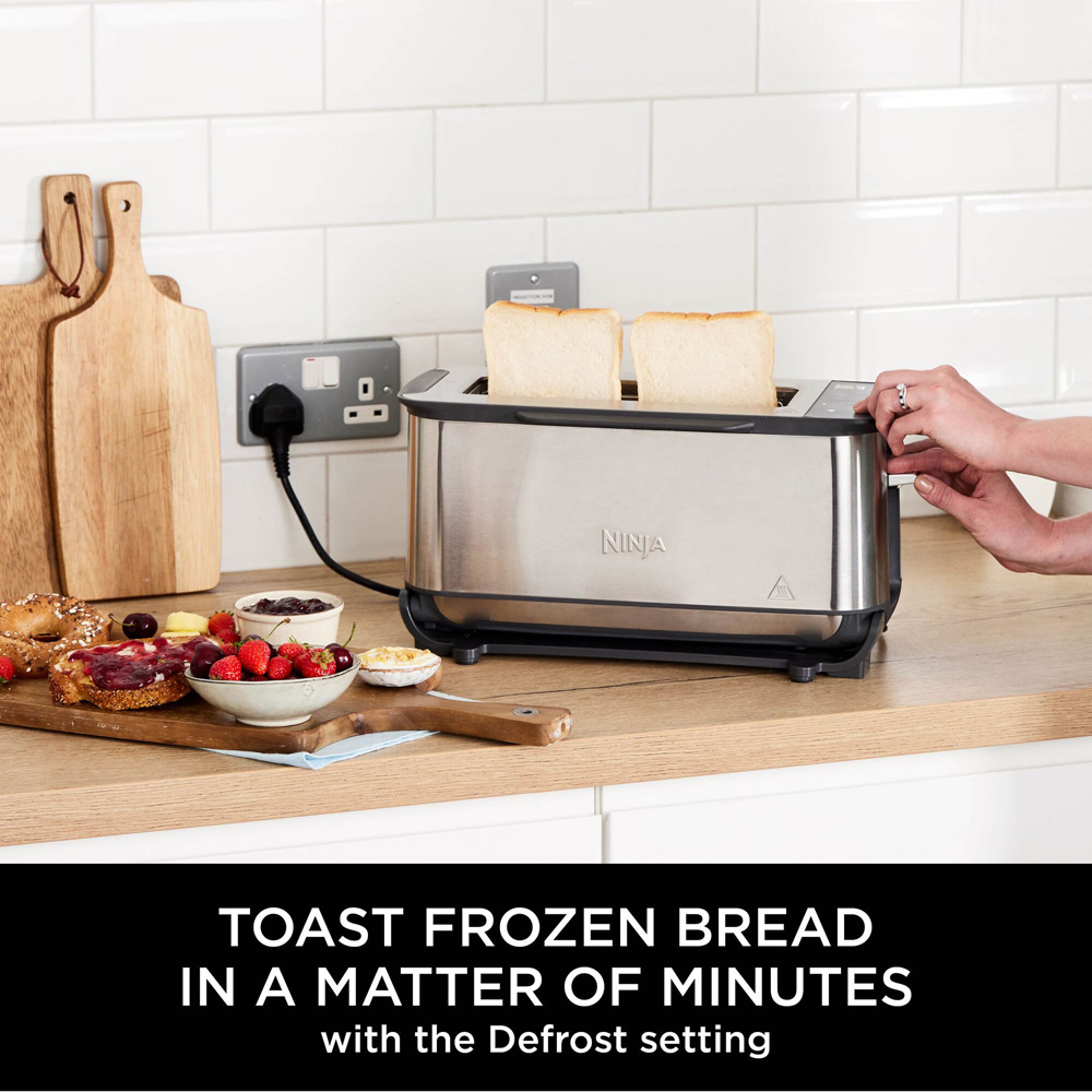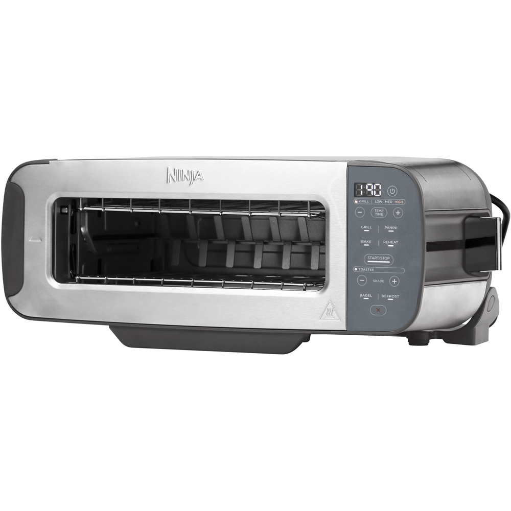 This Ninja Foodi 3 in 1 Stainless Steel Slice Toaster flips to grill, bake and press. The performance of a slot toaster meets the versatility of a grill and the convenience of a panini press – all in one space-saving design. More than a toaster, get creative with seven cooking functions: Toast, Bagel, Defrost, Grill, Panini, Bake and Reheat. Enjoy perfectly golden toast, exactly as you like it, with seven shade settings to choose from. The long, wide slot easily fits two slices of bread or two bagel halves. A dedicated bagel setting automatically selects a higher temperature on the cut side for a golden outside and a soft inside. The defrost setting toasts frozen bread in a matter of minutes. Flip to transform from toaster to grill - with a unique flip design, you can choose between two cooking positions. Flip down to transform from a vertical slot toaster into a versatile horizontal grill, creating everything from pastries to paninis. In grill mode, create classic cheese-on-toast, brunch muffins, fish finger sandwiches, crispy paninis and toasties with a golden finish. Easily bake everyone’s favourite treats, from buttery croissants to flaky pastries. Reheat leftovers such as pizza slices to restore that fresh-out-of-the-oven finish. Three temperature settings give you total control. With the easy-to-use Bake Tray and Panini Press accessory, you can make delicious toasted sandwiches and café-style paninis, packed with your favourite fillings – from mozzarella, pesto and tomato to tasty tuna melts. There’s no need to worry about messing with a uniquely designed crumb tray to catch crumbs from both cooking positions.
