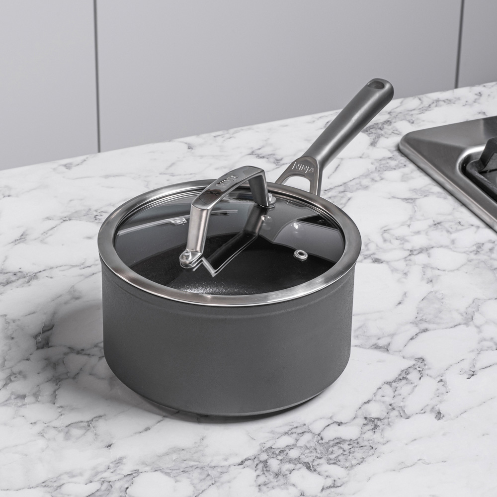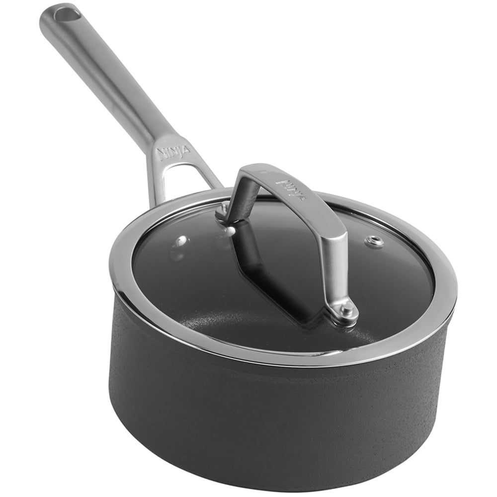 Prepare delicious meals for your family with the Ninja Foodi Zerostick 18cm Aluminium Saucepan with Lid. This saucepan is up to 20 times tougher than traditional non-stick cookware. It is durable and long-lasting, backed by a 10-year replacement guarantee, which includes the zero stick coating. The saucepan is precision-engineered at 17,000°C, which fuses plasma ceramic particles to the surface and creates a robust, textured surface that interlocks with exclusive coating. This durable textured cooking surface is safe for metal utensils, scratch-resistant, and dishwasher-safe for easy cleaning. Additionally, it is free from PFOA, lead, and cadmium. Made from durable forged aluminium with a hard-anodized exterior, this cookware features cast stainless steel handles that are comfortable to hold. This versatile saucepan is perfect for everyday cooking, whether you’re a beginner or an experienced chef. Designed to withstand high-heat cooking, the heavy-gauge aluminium ensures even heating and prevents hot spots for consistent results. It is compatible with induction, gas, electric, and ceramic cooktops, making it suitable for a 13cm induction ring.