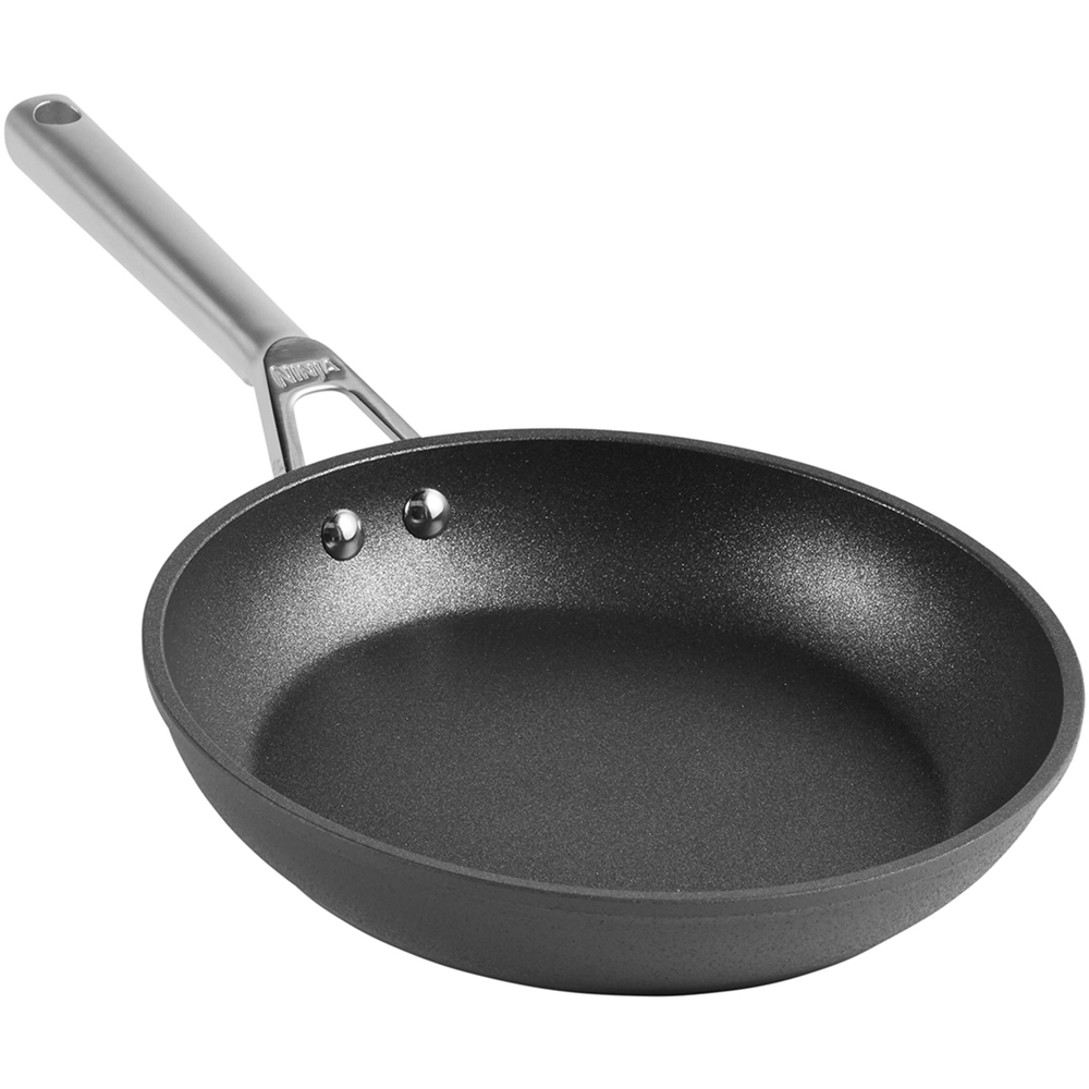 Prepare delicious meals for your family with the Ninja Foodi Zerostick 2 Piece Frying Pan Set. This set is up to 20 times tougher than traditional non-stick cookware. It is durable and long-lasting, backed by a 10-year replacement guarantee, which includes the zero stick coating. The saucepan is precision-engineered at 17,000°C, which fuses plasma ceramic particles to the surface and creates a robust, textured surface that interlocks with exclusive coating. This durable textured cooking surface is safe for metal utensils, scratch-resistant, and dishwasher-safe for easy cleaning. Additionally, it is free from PFOA, lead, and cadmium. Made from durable forged aluminium with a hard-anodized exterior, this cookware features cast stainless steel handles that are comfortable to hold. This versatile pot is perfect for everyday cooking, whether you’re a beginner or an experienced chef. Designed to withstand high-heat cooking, the heavy-gauge aluminium ensures even heating and prevents hot spots for consistent results. The set includes two frying pans set (24 cm and 28 cm). The induction hob compatibility is as follows: the 16 cm frying pan fits an 18.75 cm induction ring.