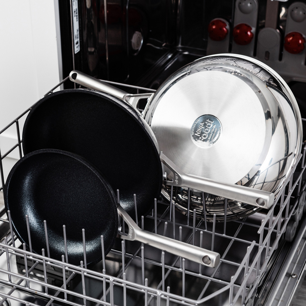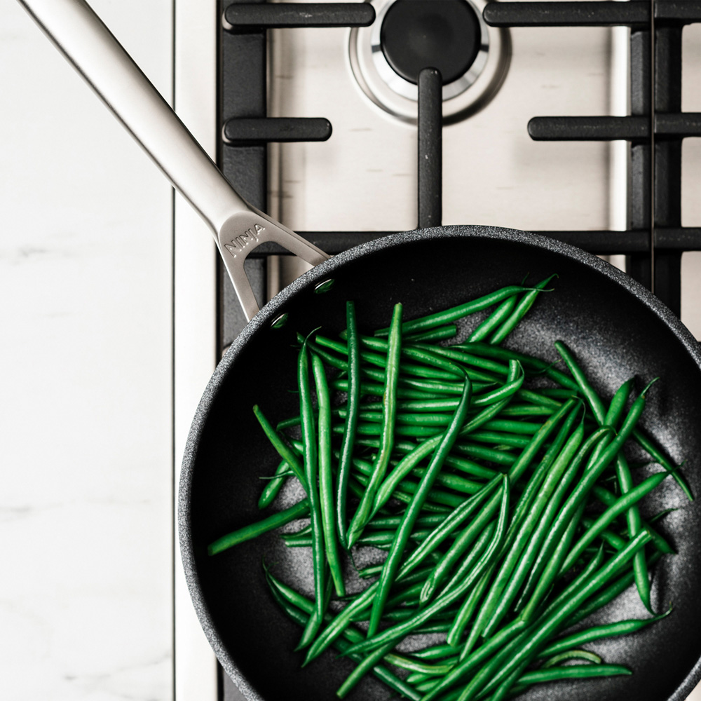 Upgrade your kitchen with the Ninja Foodi Zerostick 28cm Stainless Steel Frying Pan. This versatile pan is ideal for experienced chefs and those new to cooking. It is designed to be up to 20 times tougher than traditional non-stick pans. With its durable construction, it comes with a 10-year replacement guarantee, which includes the ZEROSTICK coating. Crafted from polished stainless steel with an aluminium core, this elegant pan offers even heat distribution and excellent high-heat searing. The cast stainless steel handles are comfortable to hold, making it an excellent choice for confident cooks, kitchen newcomers, and style-conscious individuals. The pan is precision-engineered at 17,000°C, where plasma ceramic particles fuse to the surface, creating a robust, textured surface that interlocks with Ninja’s exclusive coating. The extremely durable cooking surface is metal-utensil safe, scratch-resistant, and dishwasher-safe, ensuring easy cleaning. It is also PFOA, lead, and cadmium-free. Designed to endure high-heat cooking, the pan promotes even heating with no hot spots, delivering consistent results. It is perfect for sautéing potatoes, and tender vegetables, poaching chicken or fish in a flavourful sauce, searing your favourite steak, or creating fluffy frittatas finished to perfection in the oven. The 28cm pan is compatible with all hob types, including induction, gas, electric, and ceramic, and it is suitable for a 20.25cm induction ring.