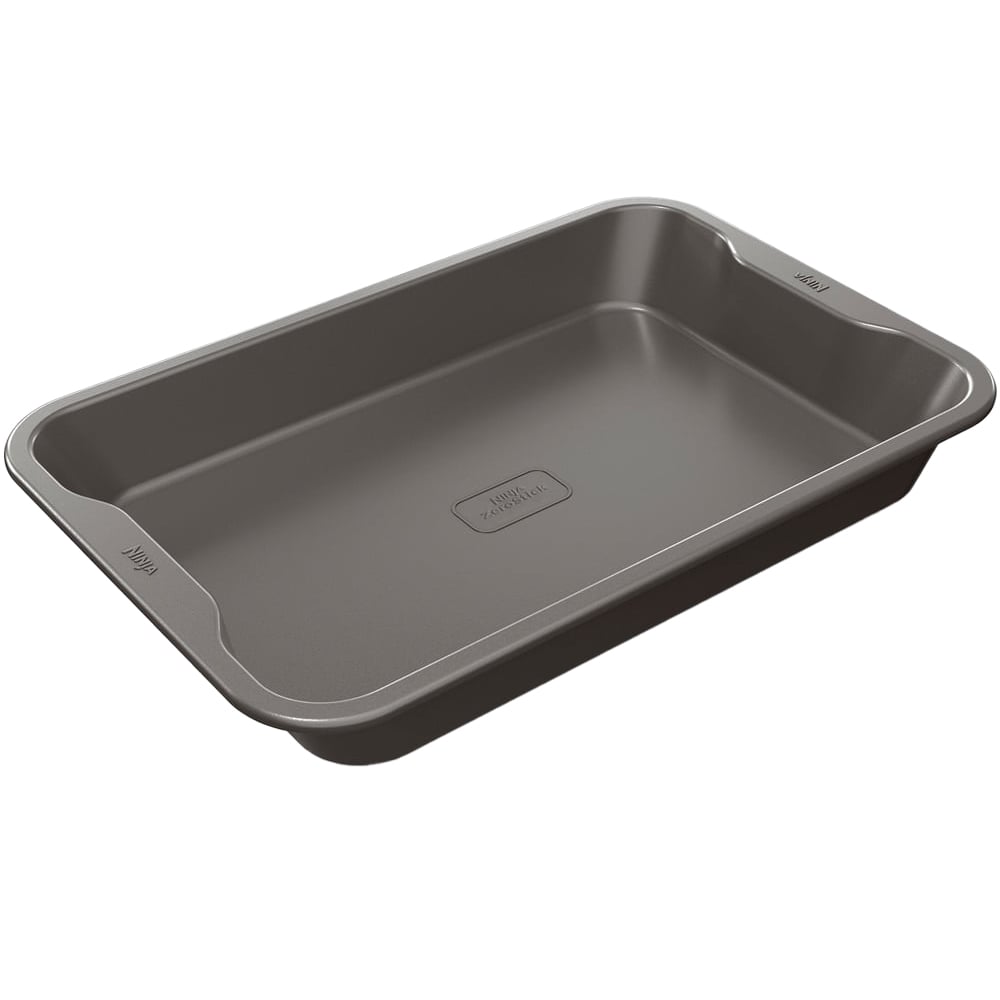 Make roasting effortless with the Ninja Foodi Zerostick 33cm Roasting Tin. Designed for effortless food release, this tin is perfect for roasting meats, vegetables and more. It features a durable non-stick coating that keeps food from sticking, unlike traditional non-stick bakeware. Built with premium thick aluminised steel, it delivers even heat distribution for perfect browning and resists warping at high temperatures, oven-safe up to 260°C. The wide ergonomic rims make handling easy, while deep walls prevent spills. Durable and rust-resistant, it comes with a 10-year replacement guarantee, including the non-stick coating. Clean-up is simple, just wipe it clean or place it in the dishwasher. Dimensions: H23 x D33cm.