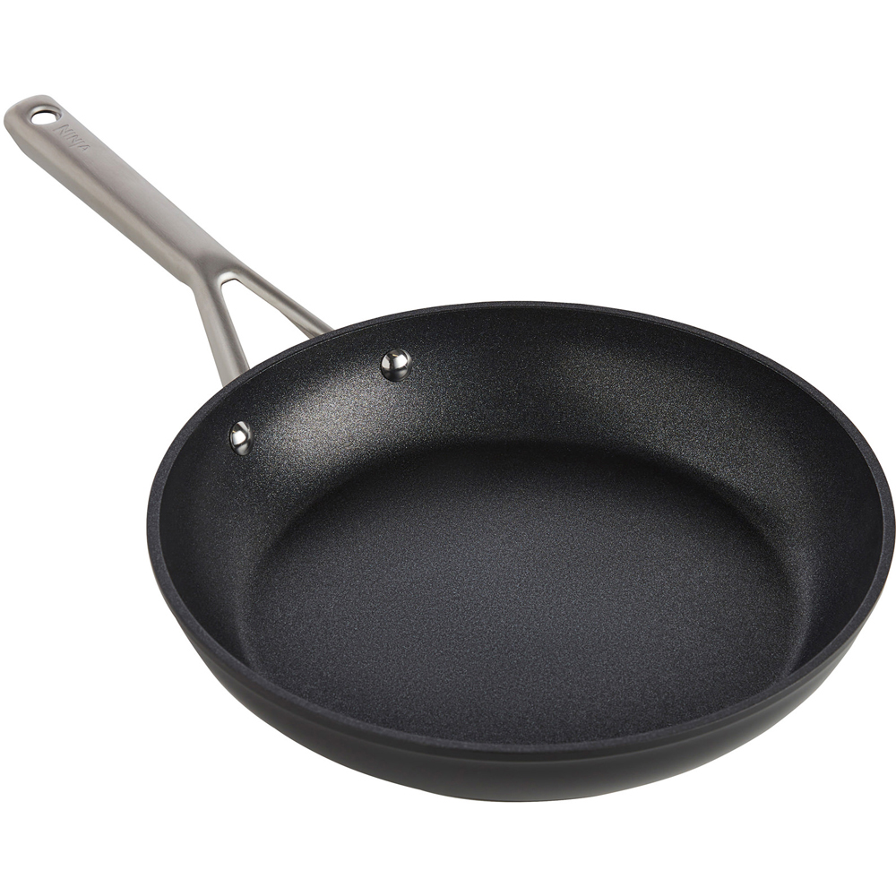 Upgrade your kitchen with the Ninja Zerostick Essentials 28cm Aluminium Frying Pan. This versatile pan is ideal for experienced chefs and those new to cooking. It is designed to be up to 20 times tougher than traditional non-stick pans. With its durable construction, it comes with a 10-year replacement guarantee, which includes the ZEROSTICK coating. Crafted from polished stainless steel with an aluminium core, this elegant pan offers even heat distribution and excellent high-heat searing. The cast stainless steel handles are comfortable to hold, making it an excellent choice for confident cooks, kitchen newcomers, and style-conscious individuals. The pan is precision-engineered at 17,000°C, where plasma ceramic particles fuse to the surface, creating a robust, textured surface that interlocks with Ninja’s exclusive coating. The extremely durable cooking surface is metal-utensil safe, scratch-resistant, and dishwasher-safe, ensuring easy cleaning. It is also PFOA, lead, and cadmium-free. Designed to endure high-heat cooking, the set promotes even heating with no hot spots, delivering consistent results. It is perfect for sautéing potatoes, and tender vegetables, poaching chicken or fish in a flavourful sauce, searing your favourite steak, or creating fluffy frittatas finished to perfection in the oven. The induction hob compatibility is as follows: the 28cmsaucepan fits a 18.75cminduction ring. Additionally, the oven-safe tempered glass lids have a stainless steel rim that prevents splatter, locks in moisture, and provides maximum visibility.