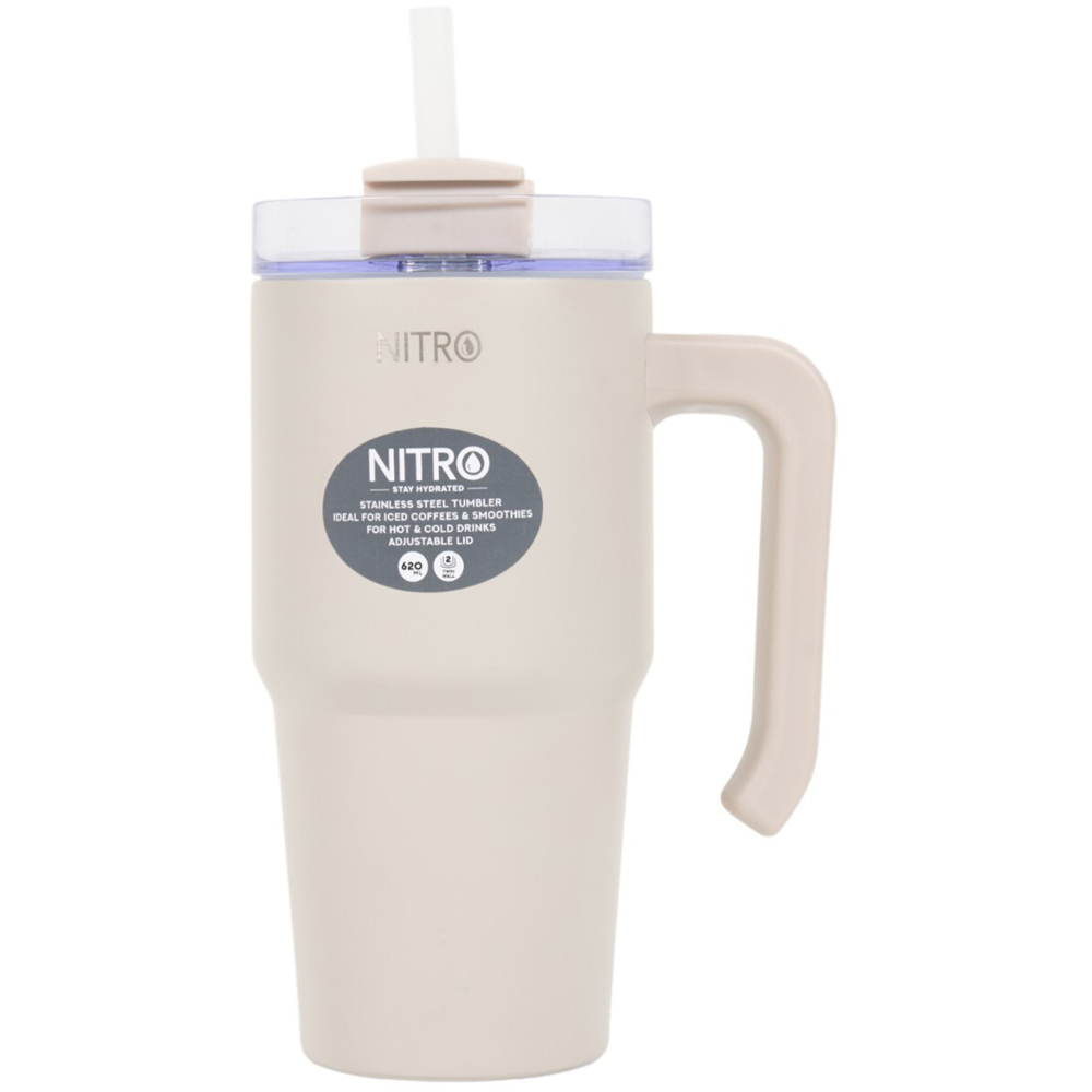 Discover versatile sipping with the Nitro Premium Stainless Steel Tumbler. Available in an assortment of hues, this tumbler features a stainless steel body and a secure plastic lid with a straw, making it ideal for both hot and cold beverages. Stylish yet functional, its twin-wall vacuum insulation helps maintain your drink's temperature for longer. For added ease, the adjustable lid seamlessly switches between a straw opening for cold drinks and a wider gap for hot beverages, offering flexibility for every preference. Whether you're enjoying a refreshing smoothie, iced coffee, or your morning latte, this tumbler is your perfect everyday companion.