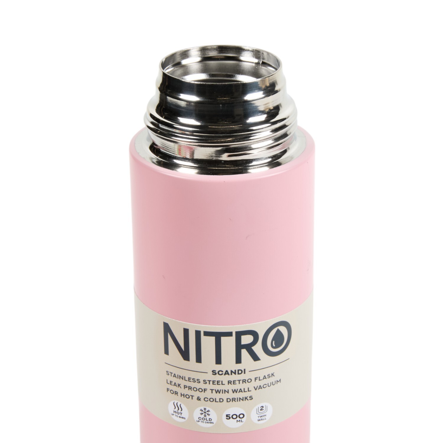 Bring a touch of timeless charm to your daily routine with the Nitro Scandi Stainless Steel Vacuum Retro Flask. Blending style with practicality, this bottle is crafted using sturdy stainless steel and topped with a plastic cup lid, making it perfect for enjoying your favourite drink at any time. The twin-wall vacuum construction keeps beverages hot for up to eight hours and cold for 24 hours. With its internal flip-top pouring spout to help prevent spills, this flask makes a practical choice for everyday use or travel.