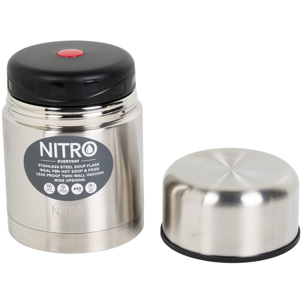 Enjoy hot meals anywhere with the Nitro Stainless Steel Soup and Food Flask. It features a wide neck opening for easy filling and cleaning, with a twin-wall insulation that keeps food and soup hot for up to eight hours or cold for up to 24 hours, so you can enjoy every bite at the perfect temperature. Completely leakproof and built to last, it's ideal for carrying meals with you on the go.