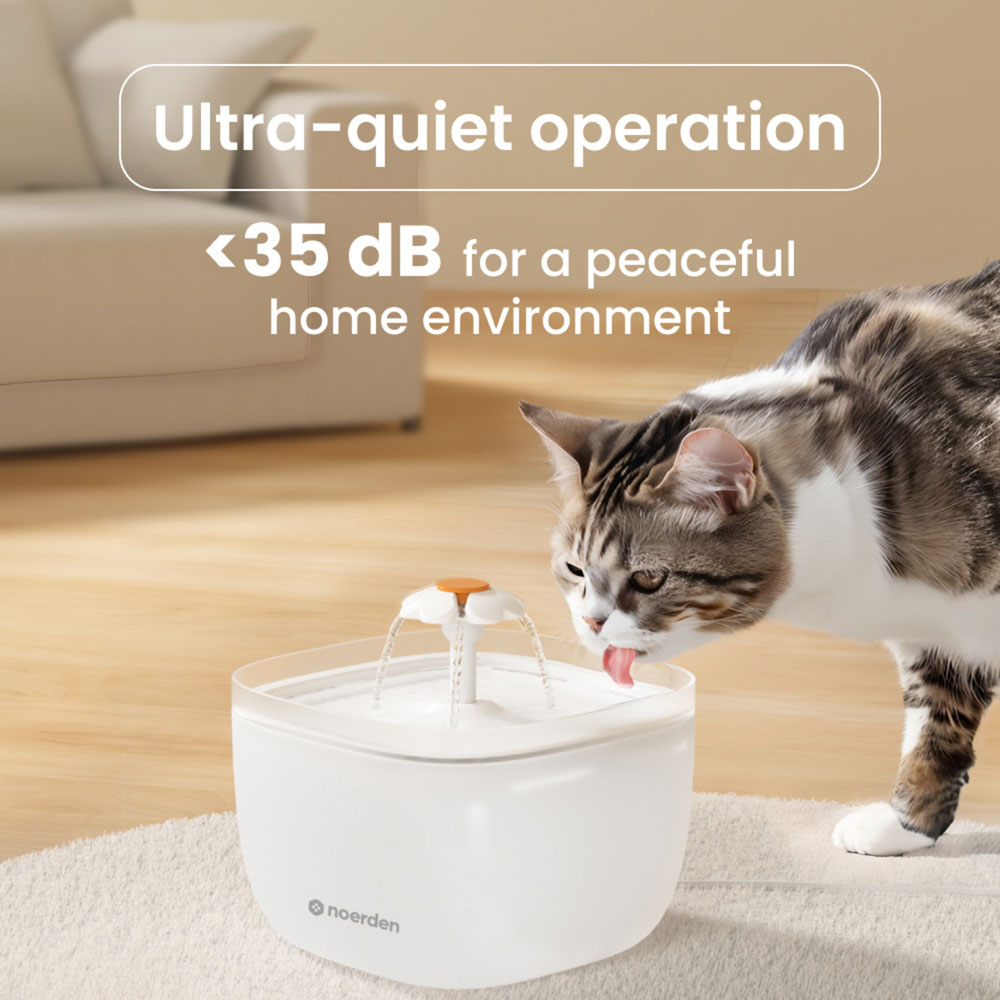The pet water dispenser offers a 360-degree drinking area, allowing your pets to easily access water from any angle throughout the day. This design ensures that your pets stay hydrated, whether they prefer drinking from the side or centre. With a continuous flow system, the dispenser provides a steady supply of fresh water, promoting healthier hydration habits for your pets. Additionally, the water dispenser features a 24-hour circulating filtration system that keeps the water clean and fresh at all times. The filtration system effectively removes impurities, ensuring your pets have access to high-quality water throughout the day. Its low noise operation ensures it won't disrupt the peace of your home, making it a quiet and efficient solution for your pet's hydration needs.