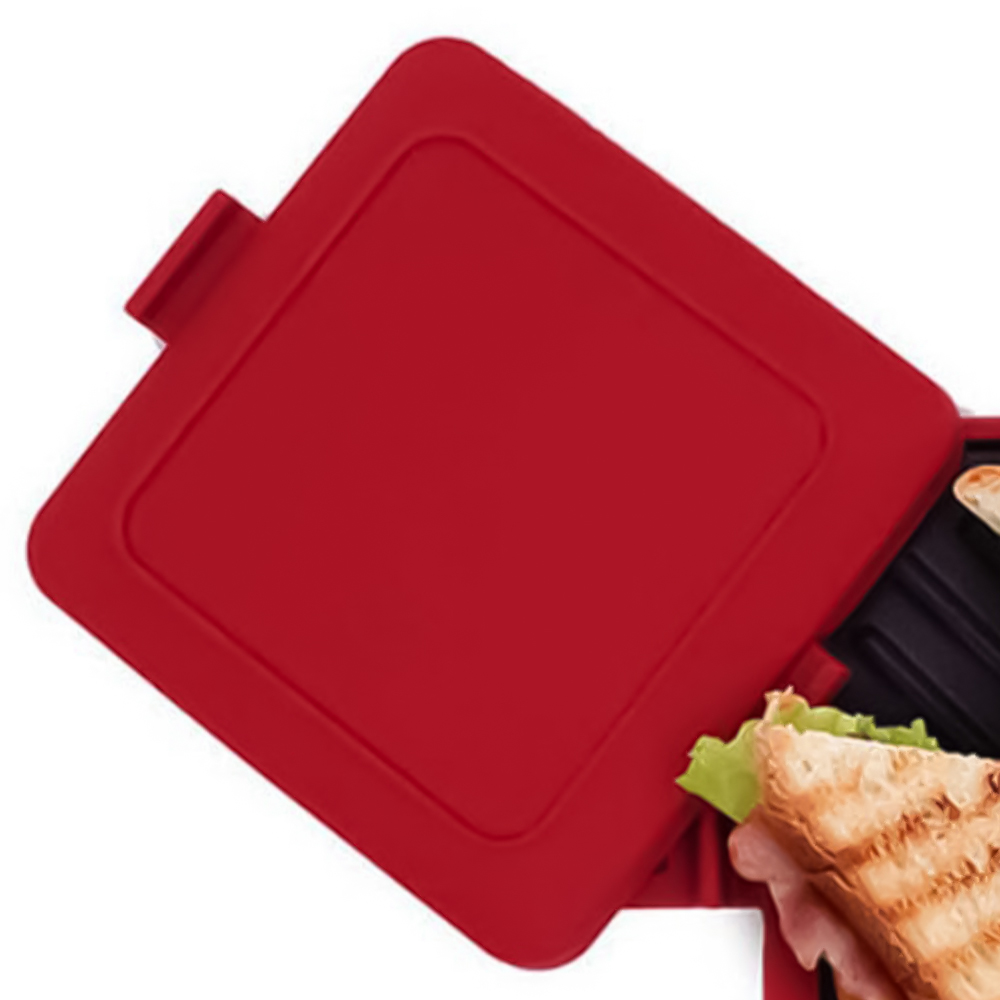 Upgrade your kitchen with this Non-stick Red Sandwich and Grill Microwave Toastie. This kitchen accessory features advanced heatwave technology, making it an ideal accessory to enhance your kitchen experience. The non-stick grill plates make cleaning fast and super easy. It's completely dishwasher-safe! It has a silicone finish for easy handling. This toastie offers you tasty, fast food at home with no preheating required and mimics conventional cooking methods, meaning lunch is ready within minutes. From buttery croissants to bagels, paninis and more, the device is versatile and is an all-round great kitchen companion. The streamlined takes up a fraction of the space and is easy to pull out and tidy away, making it perfect for students, house shares and other smaller spaces.