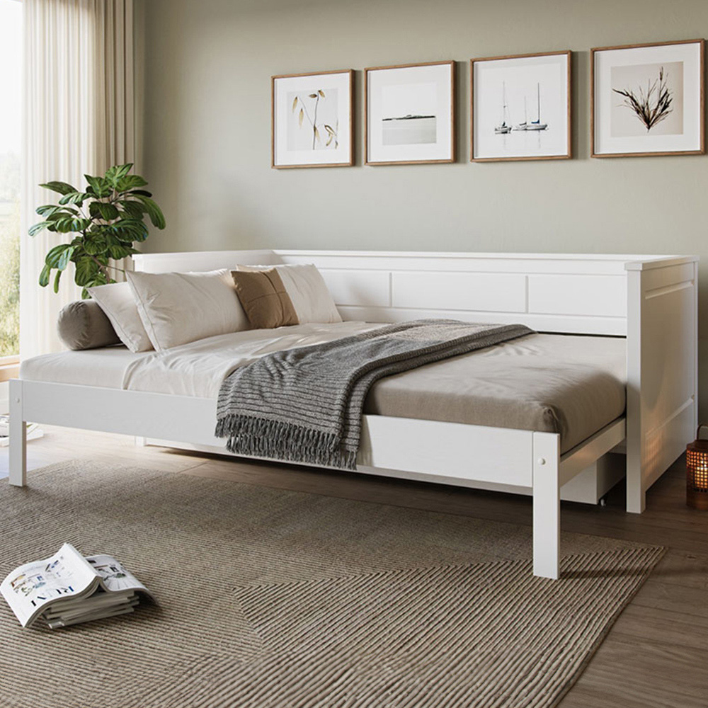 Noomi Erika Single Continental White Extending Guest Bed with Underbed Drawer