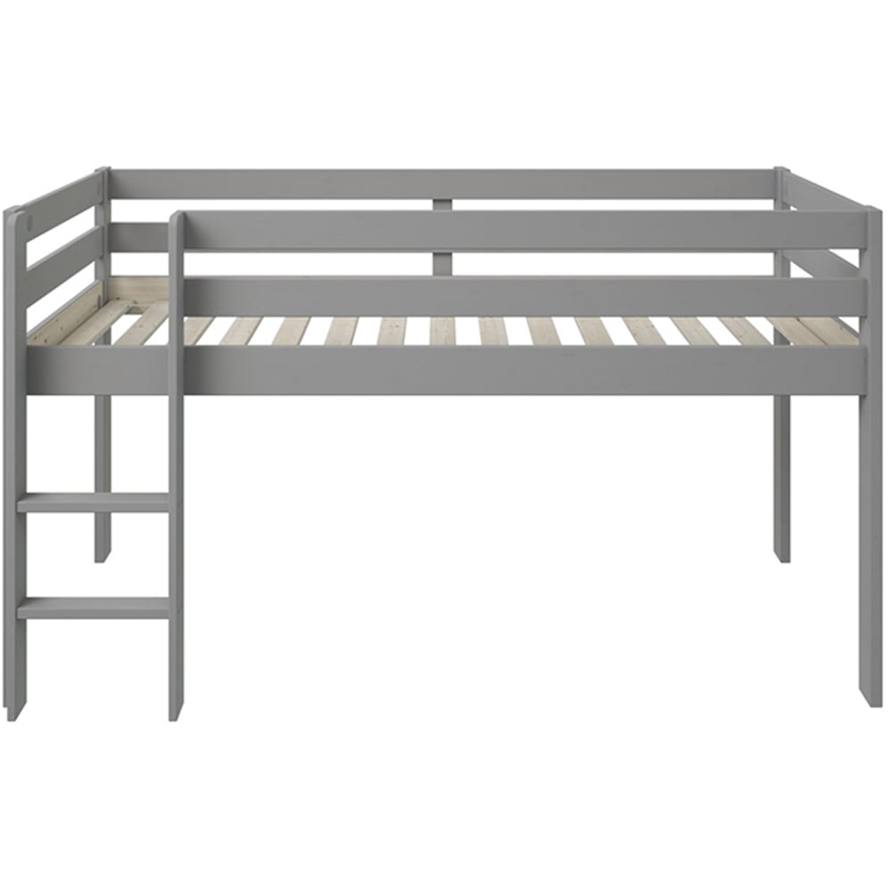 Add comfort and style to your rooms with this Noomi Midi Single Continental Grey Mid-Sleeper Frame. This mid-sleeper has room to play underneath the frame, suitable for storage, a workstation, or a play den for your child. It also has a ladder, which is compact with flat steps, making it easy to climb whilst saving space in your kid's bedroom. The bed also features a simple and stylish design, making it suitable for all kids bedrooms. Made using FSC-certified Scandinavian Pine and finished in a non-toxic eco paint, this bed can be the perfect option for your kid's room. The mid-sleeper takes a single continental-size mattress. Dimensions: H116.5 x W105.4 x L206.1cm. Underbed Height: 72.5mm.