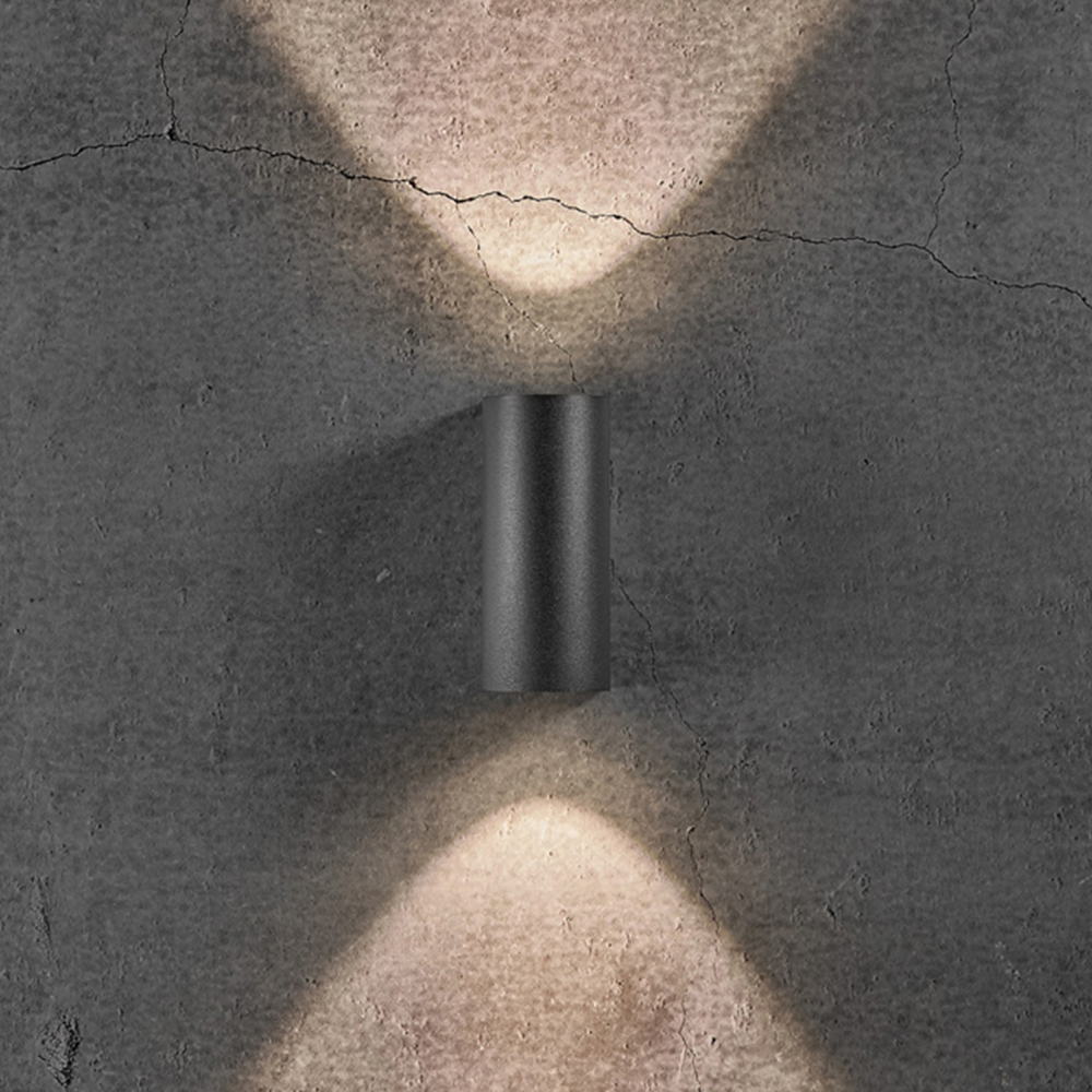 Simple and elegant wall light for outdoor use, made of lacquered metal. The light provides both up-facing and down-facing light and is ideal for the driveway or the main entrance. Supplied with LED light bulb with a low energy consumption and a long life.