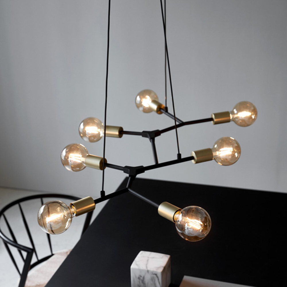 Josefine pendant with seven lamp heads is a beautiful reinterpretation of the traditional chandelier, which fits perfectly above a large dining table. Add seven identical decorative bulbs or play with several different bulbs to create your very own personal look.