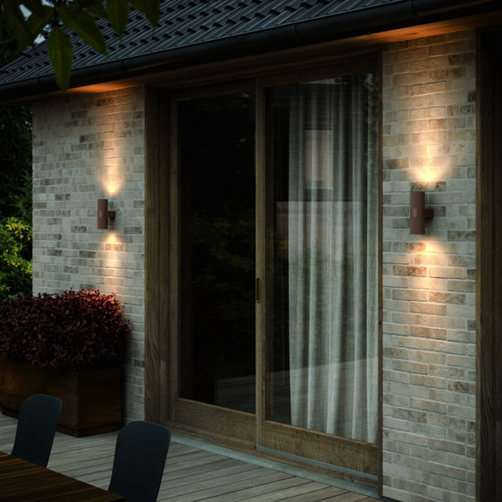 Kyklop Ripple is a modern and elegant wall light designed by the Danish design duo Says Who. Light is cast both upwards and downwards, creating an interesting lighting effect on the wall. Made from brown metal with a beautiful rippled surface.