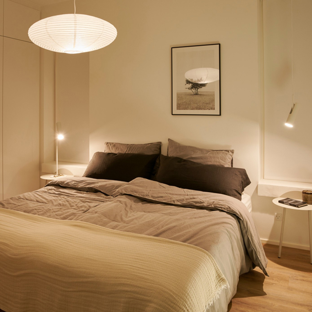 Smart Bulb E27 in white has a full 360° beam angle and milky surface that covers the electronics. The bulb also provides the ability to switch between a cold and warm light.