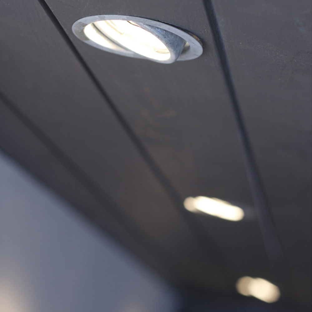 Adjustable built-in spotlight made of galvanised steel. The spotlight can easily be connected to the mains without the use of a transformer. Made from durable galvanized steel that is well suited for harsh weather..