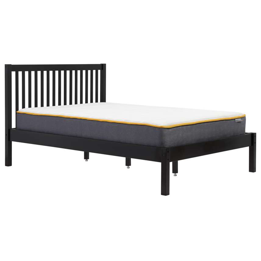 Upgrade your bedroom decor with this Nova Double Size Bed. The simple style of shaker furniture inspires this black-coloured bed. It is made from solid wood with a painted finish and has a laid-back, homely look. The tall headboard creates a refined focal point for your bedroom, which adds character and serenity and is perfect for creating a minimalist look. It also has a solid slated base for extra firmness. Also, the beds are only suitable for a UK standard-size mattress.