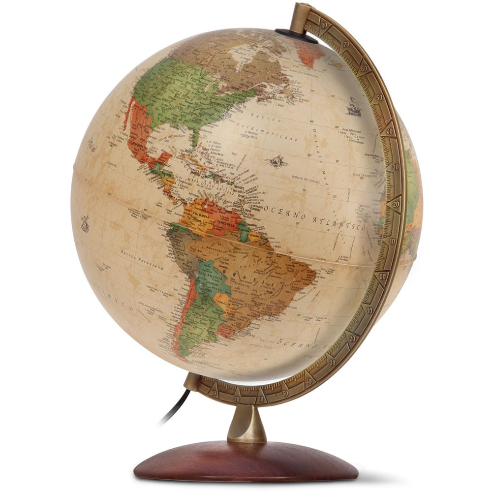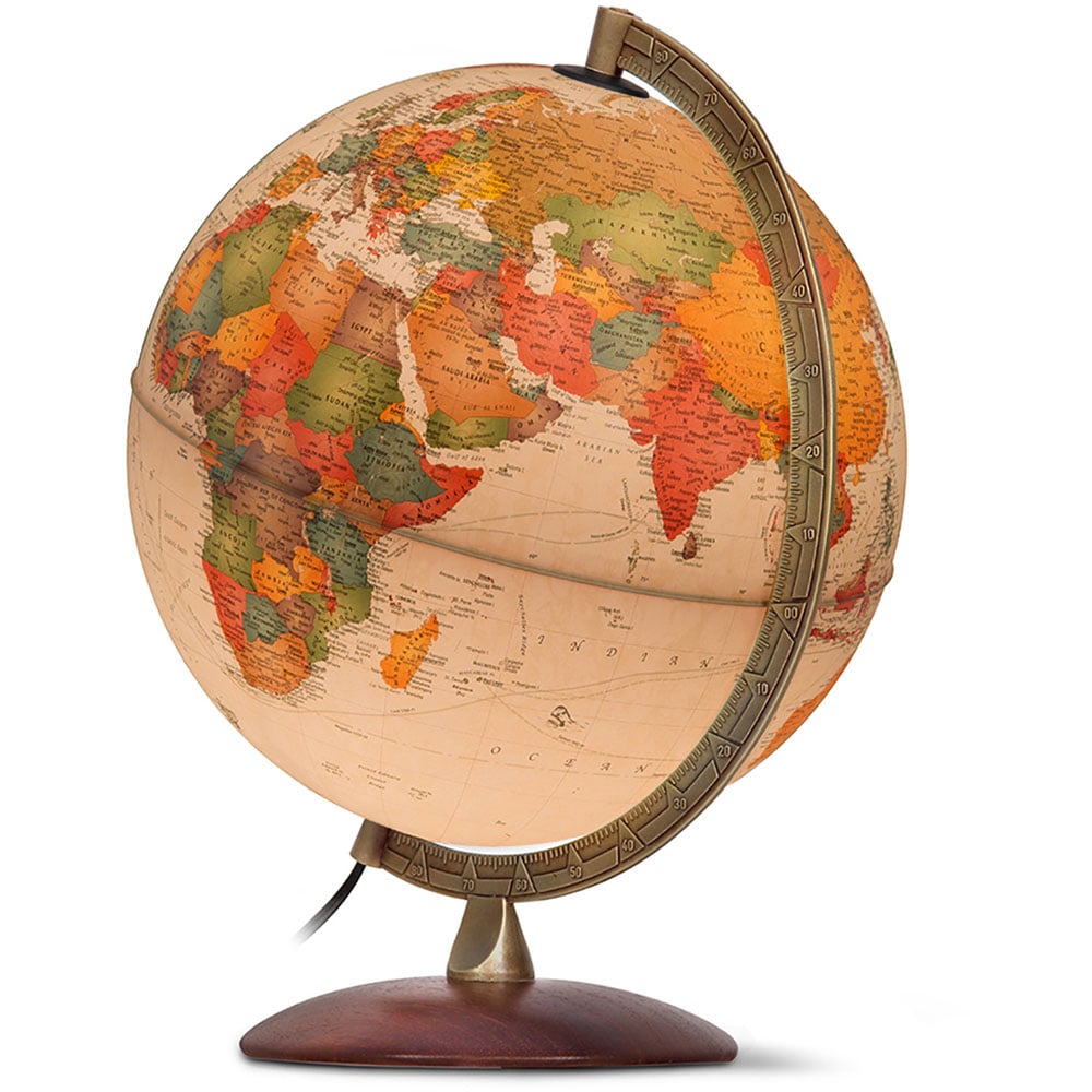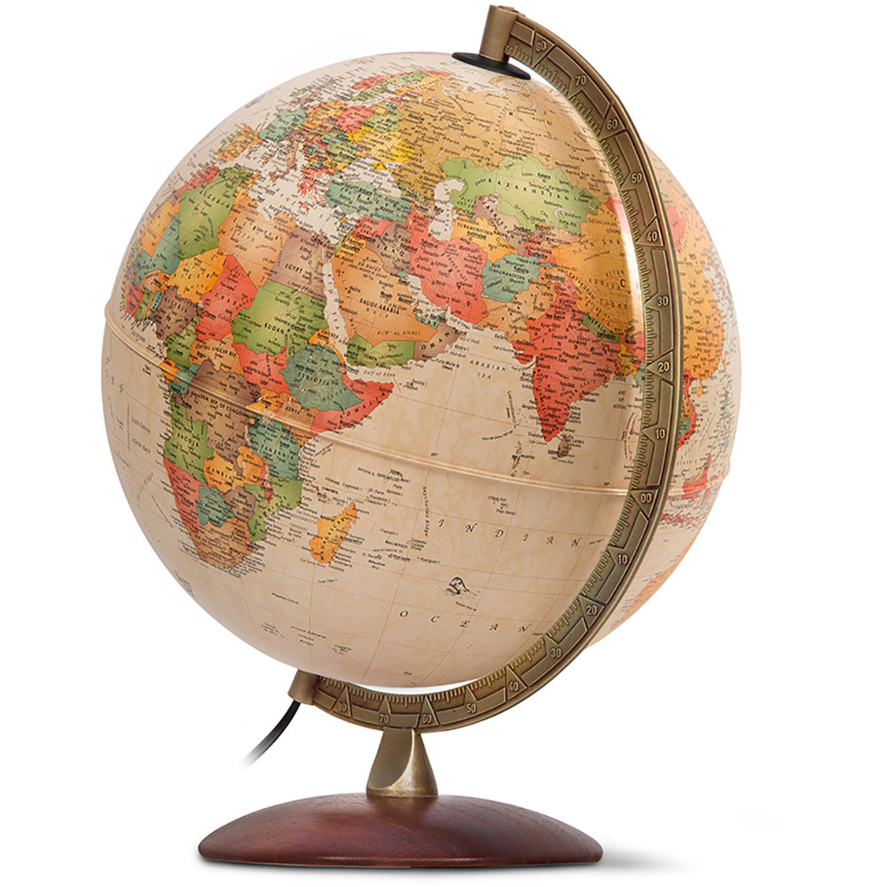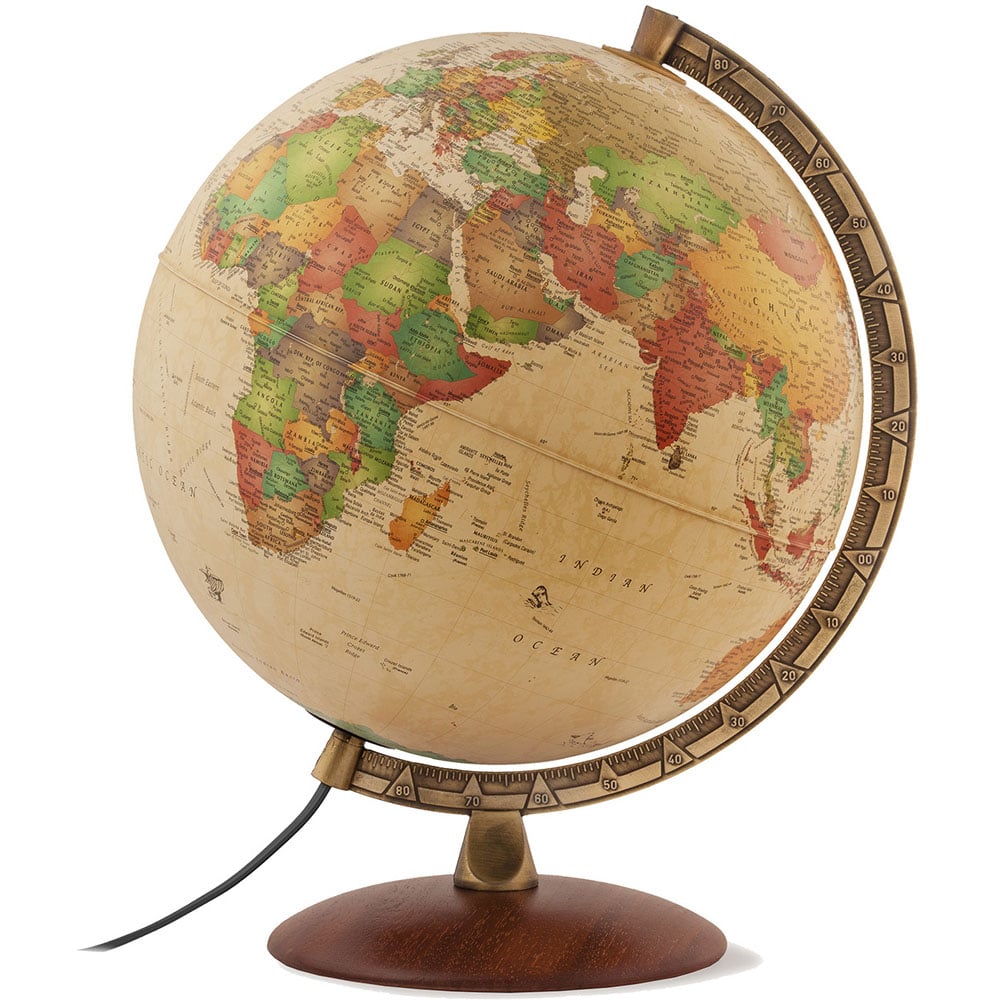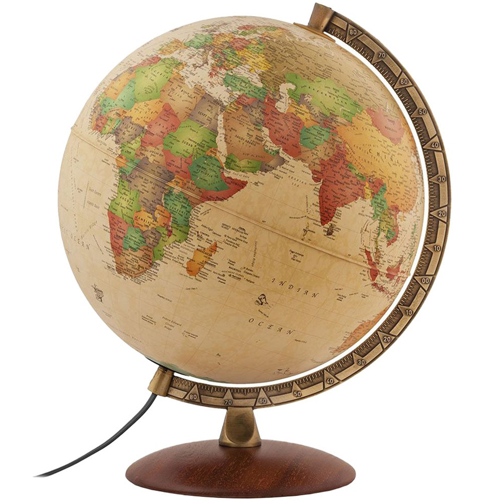 Brighten up any study or living space with an illuminated antique style globe that brings classic charm and educational appeal together, featuring a warm glow, timeless map design, sturdy wooden base and brass-coated metal arc for a striking display. You'll love how this 30cm illuminated antique globe adds a sophisticated touch to home décor or study rooms, making learning and exploring the world a delightful experience for all ages.