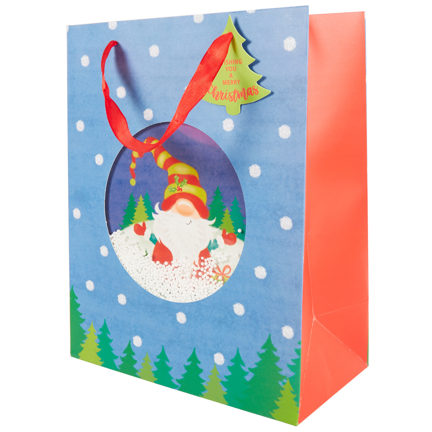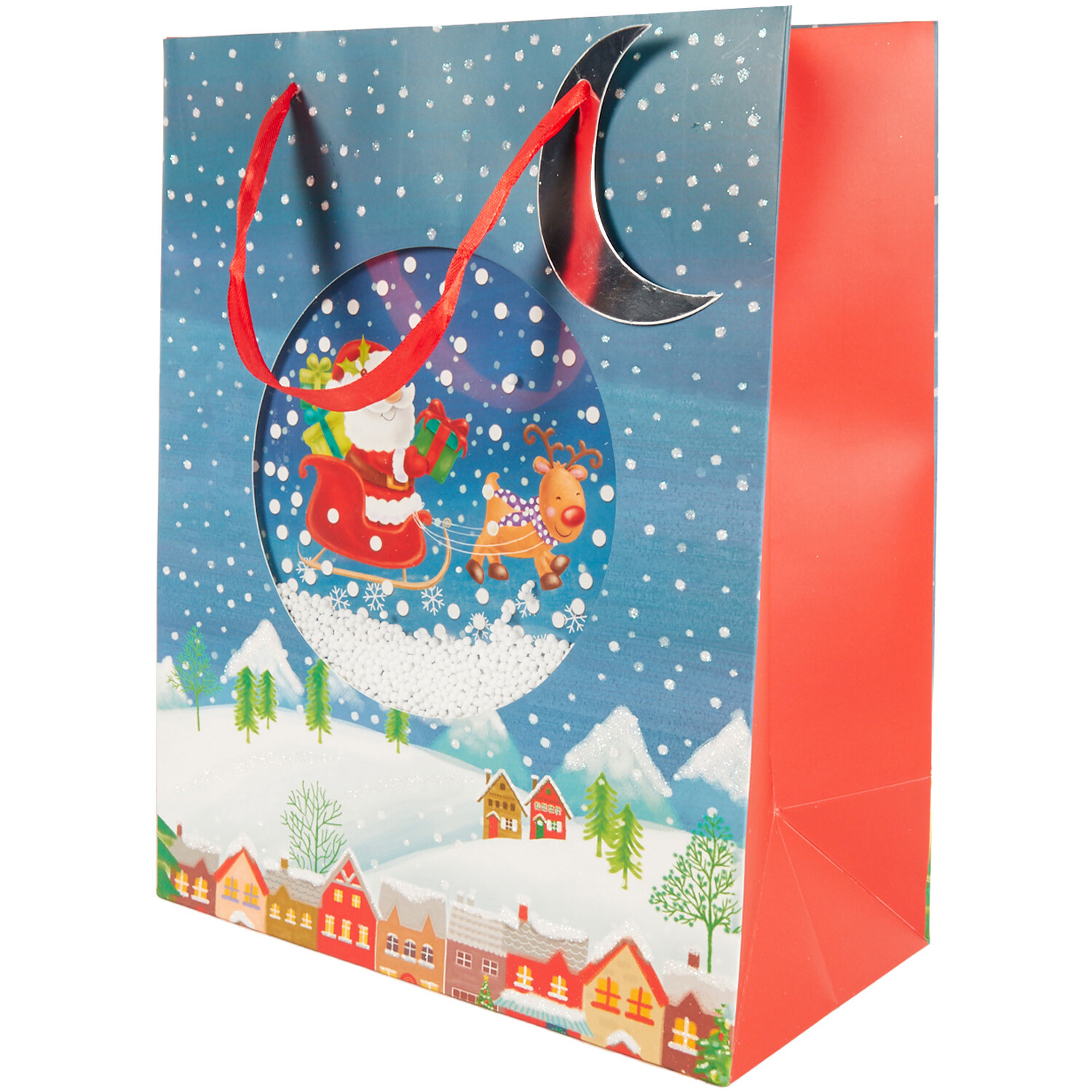 Add festive fun to your gifts with the Novelty Santa Gift Bag Large. This bag is available in an assortment of Christmas-themed designs, perfect for festive gifting. The bag features glitter accents on the front for a sparkling touch. Easy to carry, the satin ribbon handle not only add convenient but give it a sophisticated finish.