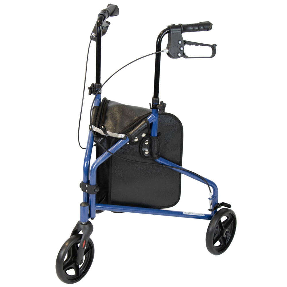 The NRS Healthcare 3 Wheel Steel Rollator is stylish and lightweight, folding easily to a compact size for you to store or transport, and is suitable for both indoor and outdoor use. Versatile and great for taking on trips or days out, it fits easily into car boots as it's both compact and lightweight, plus it includes a handy storage bag for you to store shopping or belongings. It's also perfect for use around the house and indoors. The Steel Rollator is height adjustable so that you can find the best position to suit your needs and allowing it to suit a wide range of users. It also has soft touch handles for increased comfort. For extra safety, it features large diameter wheels that have high grip tyres, with lockable brakes to keep it from rolling when you're stationary.