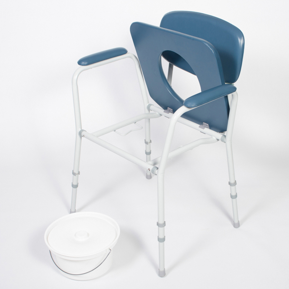 The Dovedale Comfort Commode has been designed to assist users who have difficulty accessing or using a standard toilet. With comfort in mind the commode features the addition of comfy padded armrests, padded seat and backrest, and lift-off vanity cover. The commode is easy to keep clean with it's vinyl upholstery. The Dovedale Comfort comes complete with a five-litre commode pan and lid, making it easy and convenient to remove waste once the commode has been used. The commode is fully height adjustable allowing the user to easily alter the position of the seat providing personalised user comfort specific to each individual. Supplied flat-pack with no tools required for easy assembly.