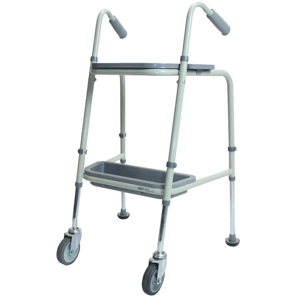 Make life easier with the Duo 200 Walking Trolley, an innovative product combining a walking frame and household trolley, designed to carry items for you and support you whilst you walk. Made from robust steel with easy to manoeuvre castors, the height adjustable frame has unique dual action sliders, which have a curved nylon base. This allows free movement when the trolley is pushed forward, whilst the gripped section creates stability and prevents the trolley from moving if you put your weight through the frame, eliminating the need for hand brakes. With space for a plate and a drink on the top tray, the trolley can help you to transfer your meals and snacks from the kitchen to somewhere you can sit and eat comfortably. This product has been designed in conjunction with Occupational Therapists and physiotherapists. Available in two colours: turquoise blue and pebble grey. Some easy, tool free, assembly is required.