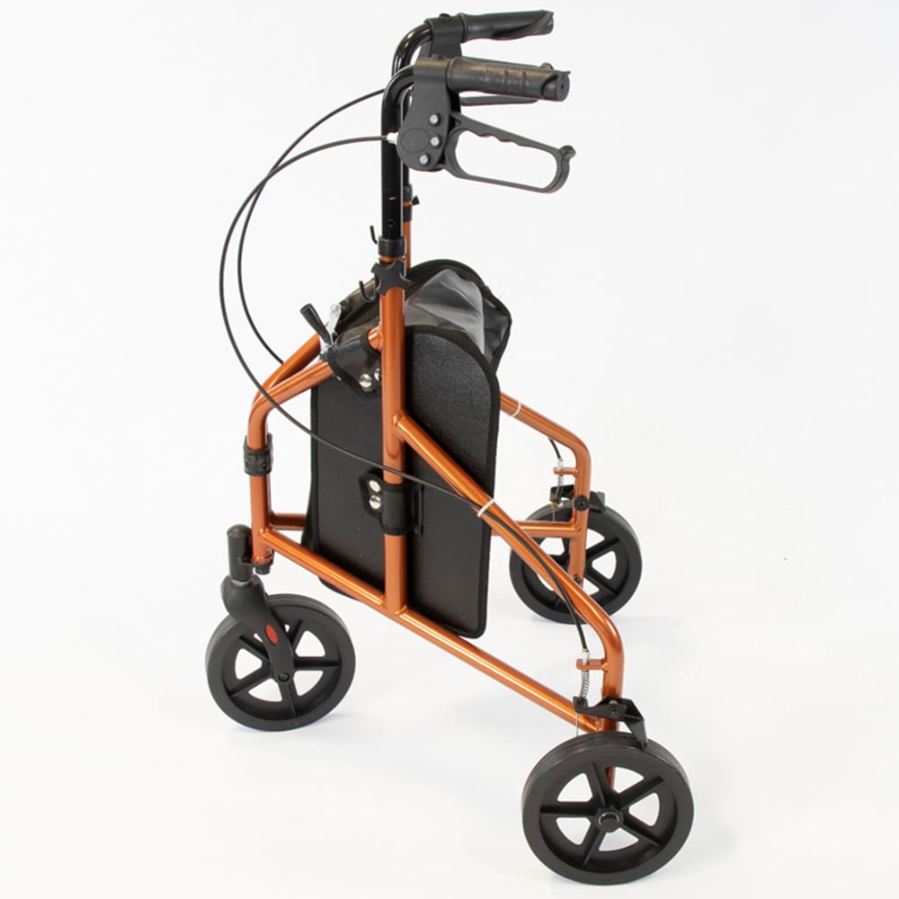 The NRS Healthcare 3 Wheel Aluminium Rollator is stylish and lightweight, easy to fold into a compact size for you to store or transport, and suitable for both indoor and outdoor use. It is height adjustable so you can find the best position to suit your needs, and allowing it to suit a wide range of different users. For extra safety, it also features large diameter wheels with high grip tyres, plus lockable brakes to keep it from rolling when you're stationary. It also has soft touch handles for increased comfort. This versatile rollator is great for taking on trips or days out, fitting easily into car boots as it is both compact and lightweight, and it has a handy storage bag for you to store belongings or shopping. It's also perfect for use around the house and indoors.
