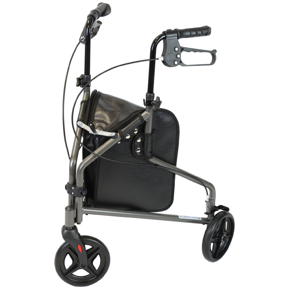 The NRS Healthcare 3 Wheel Steel Rollator is stylish and lightweight, folding easily to a compact size for you to store or transport, and is suitable for both indoor and outdoor use. Versatile and great for taking on trips or days out, it fits easily into car boots as it's both compact and lightweight, plus it includes a handy storage bag for you to store shopping or belongings. It's also perfect for use around the house and indoors. The Steel Rollator is height adjustable so that you can find the best position to suit your needs and allowing it to suit a wide range of users. It also has soft touch handles for increased comfort. For extra safety, it features large diameter wheels that have high grip tyres, with lockable brakes to keep it from rolling when you're stationary.
