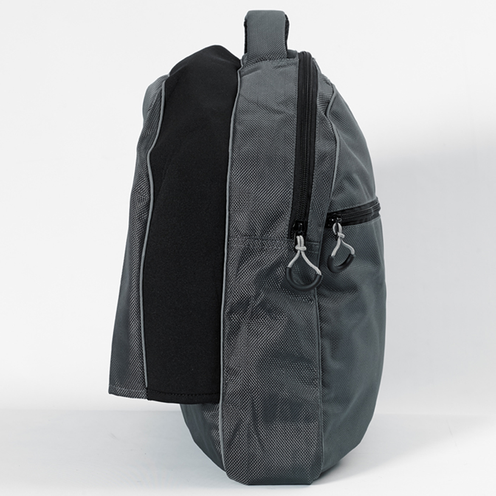 Made from Polyester, this grey Wheelchair Drop over Bag fits easily over the head rest of a wheelchair or scooter. There is a handle, on top of the bag for ease of carrying to and from shops or home. The reflective silver piping adds safety and visibility, around the edges of the bag.