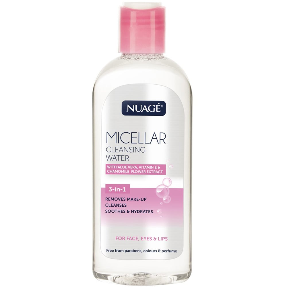 Remove makeup, cleanse, and hydrate your skin in one easy step with this Nuage Micellar Cleansing Water. This gentle solution features soothing Aloe Vera, Vitamin E and Chamomile Flower Extract to provide you with refreshed, oil and dirt-free skin.