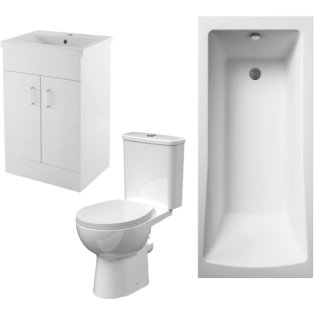 Transform any bathroom into a functional and inviting space with a single-ended bath set that includes a generous 1700mm bath, a sleek 550mm vanity unit and a practical pan and cistern, making it easy to create a coordinated look for your bathroom renovation or new build.