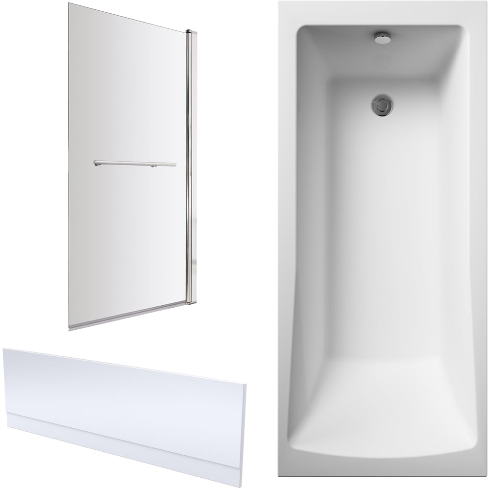 Transform your bathroom with a sleek 1700 x 750mm bath panel and matching glass screen, designed to bring a fresh look and practical touch to any space. Enjoy a coordinated finish that complements modern settings and makes cleaning simpler, with an easy-fit design that lets you update your bath area quickly. Perfect for those seeking a standard bath side panel with a shower screen included, it's a smart choice for both style and function. It features square single ended bath along with a square bath screen with an aluminium profile finished in chrome. It is also equipped with a chrome towel rail. Please note that the end panel is not included. It comes un-drilled, and a sturdy leg set is supplied for easy installation and added support. Shower Bath: 1700 x 380 x 750mm. Pannel: 1700 x 35 x 510mm. Screen: 1435 x 24 x 790mm.