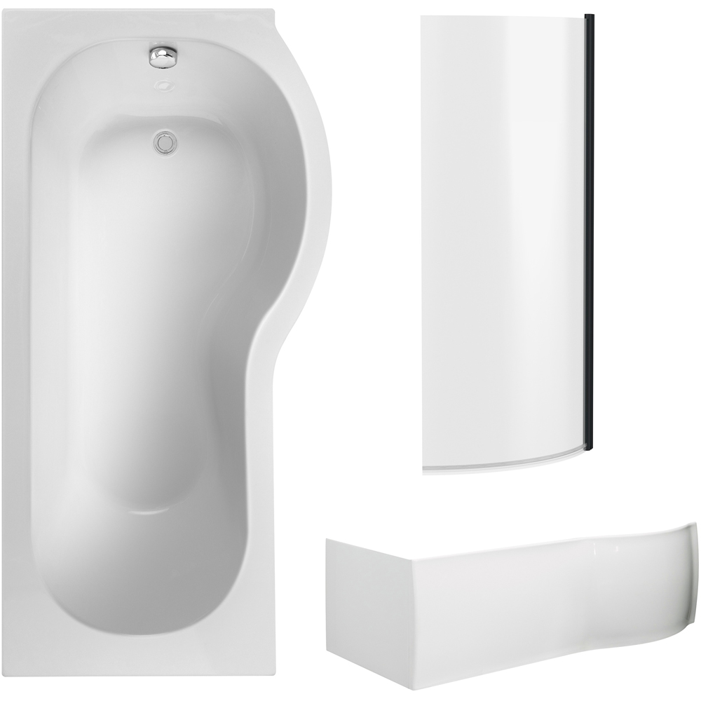 Transform your bathroom with a right hand P shaped bath panel and a sleek black framed screen, creating a modern and functional bathing space that feels both inviting and practical. Designed for a perfect fit at 1700mm, the combination of the panel and shower screen brings contemporary style while helping keep water contained during showers, making everyday routines a breeze. It features a curved P-shaped screen with an aluminium rail finished in matt black. Please note that the end panel is not included. It comes un-drilled, and a sturdy leg set is supplied for easy installation and added support. Shower Bath: 1700 x 415 x 850mm. P Shaped Panel: 1695 x 170 x 510mm. Screen: 1430 x 185 x 715mm.