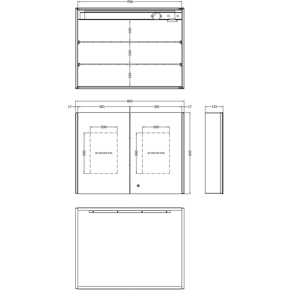 Enhance your bathroom with the nuie 2 Door Glass Mirror Cabinet 600 x 800mm. This mirror features touch sensor technology, LED lights, and a built-in shaver socket. It's easy to install and splash-proof (IP44), suitable for installation within zones two and three.