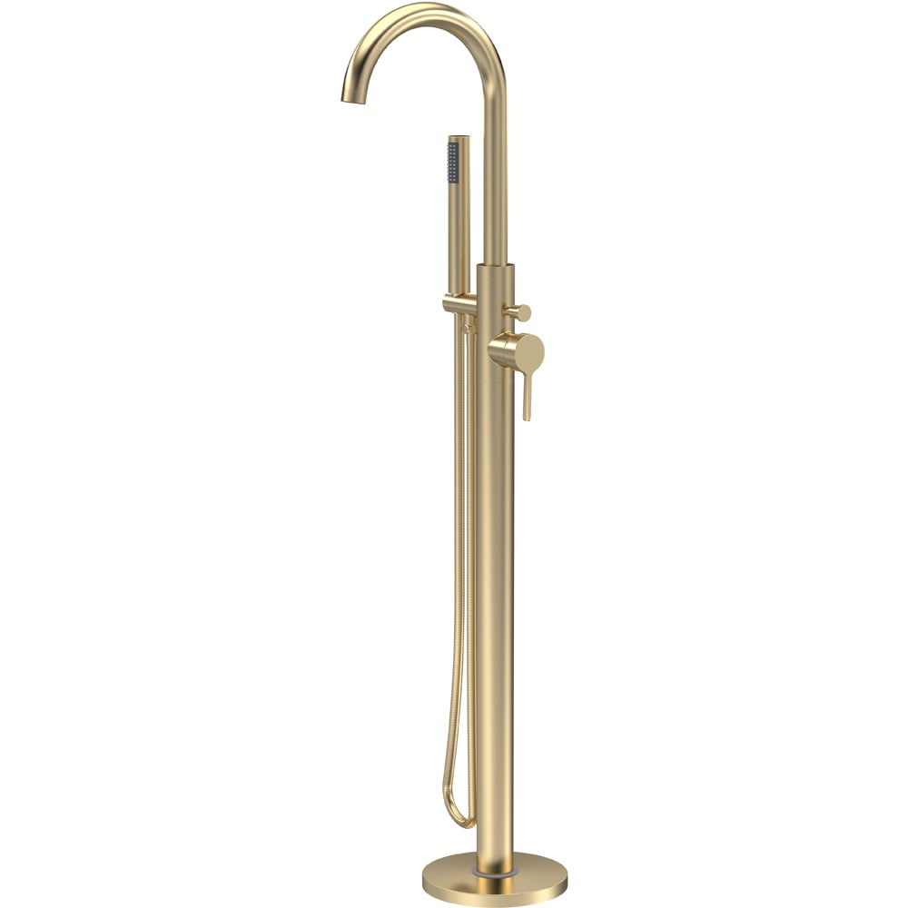 Give your bathroom a sleek hotel look with the nuie Aztec Brushed Brass Tec Floor Standing Bath Shower Mixer Tap. Crafted from brass and ABS, it's backed by ceramic disc technology to provide long life and smooth operation. This tap is adorned with a single-column design to offer a true minimalist effect and add a touch of style to it. Plus, this tap comes with an included handset and hose for added ease. With a luxury brushed brass finish, it elevates your bathroom's look easily.