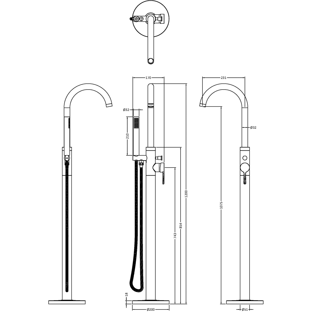 Give your bathroom a sleek hotel look with the nuie Aztec Tec Chrome Floor Standing Bath Shower Mixer Tap. Crafted from brass and ABS, it's backed by ceramic disc technology to provide long life and smooth operation. This tap is adorned with a single-column design to offer a true minimalist effect and add a touch of style to it. Plus, this tap comes with an included handset and hose for added ease. With a luxury chrome finish, it elevates your bathroom's look easily.