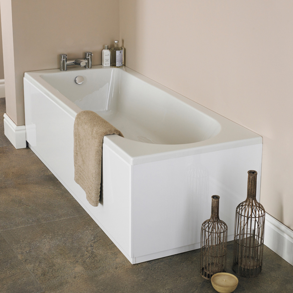 Sink into luxury with the nuie Barmby White Eternalite Round Single Ended Bath 1700 x 700mm. This elegant single-ended bath boasts a sleek round shape and comes without tap holes for a clean, modern appearance. Crafted from eternalite, a high-quality 4mm acrylic material, this bath guarantees lasting vibrancy of its colour without any fading. It comes complete with a leg set and is compatible with bath screens for added versatility. Plus, it retains heat for an impressive 30 minutes longer than standard baths, promising a truly indulgent bathing experience. Plus, it includes a generous five-year guarantee. Dimensions: H380 x W700 x L1700mm.