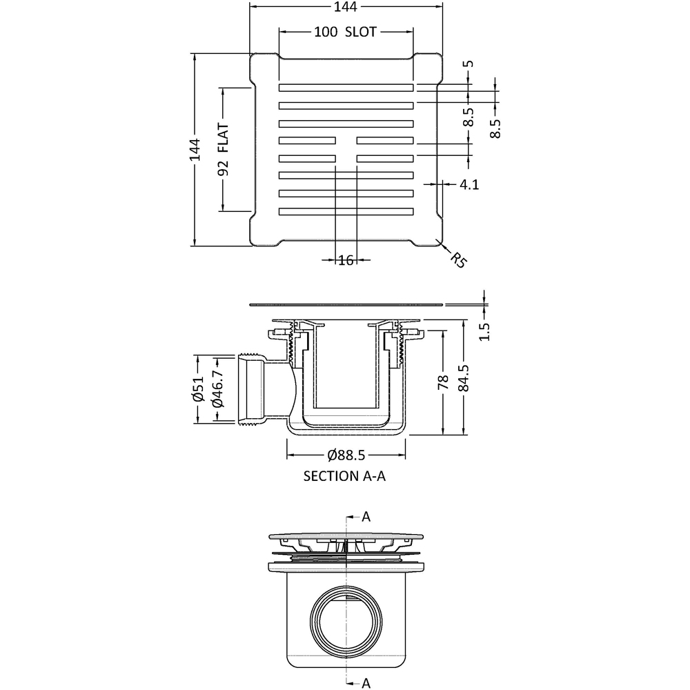 nuie Black and Chrome Square Shower Waste Top