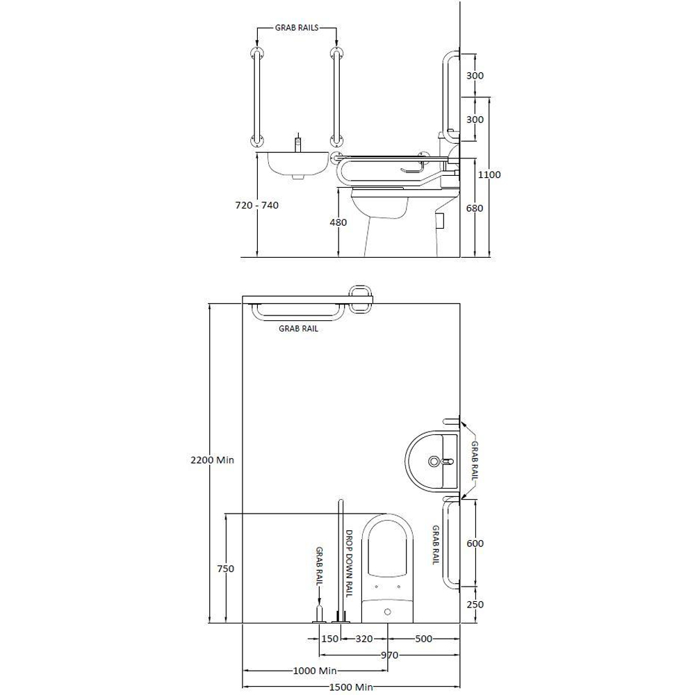 Uncover a smarter and more inclusive bathroom with the nuie Blue Wall Hung Bathroom Document M Set. This is a complete bathroom solution designed to provide accessibility, comfort and style. This set includes comfort height Doc M pan, Doc M cistern, toilet seat, wall mounted basin, five grab rails (with the fifth rail designed to fit the back of the door), one drop-down rail and spray mixer tap. Please note that mirror and bottle trap are not included.