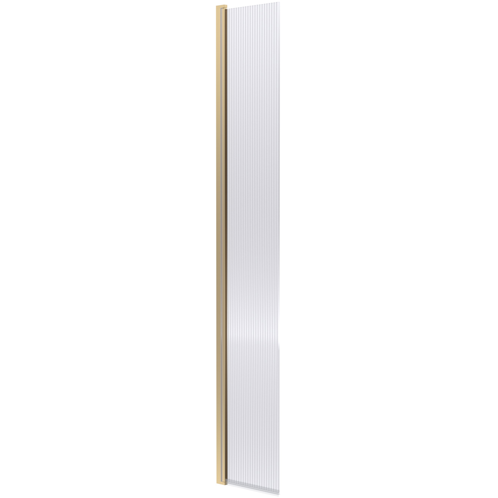 Enhance your bathroom with a functional and sleek bath screen with nuie Brushed Brass Fluted Hinged Flipper Screen 300mm. It features a fluted design, ideal for infusing Art Deco elegance into your bathroom. It gives your bathroom a modern look and creates additional privacy. Features 8mm toughened safety glass. It must be in conjunction with another screen. Made of aluminium with a brushed brass finish.