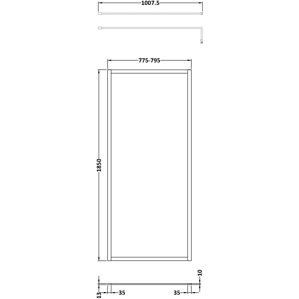 nuie Brushed Brass Full Outer Framed Wetroom Screen 1850 x 800mm