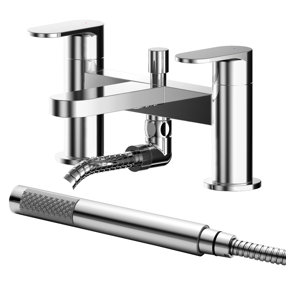 nuie Chrome Deck Mounted Bath Shower Mixer with Kit