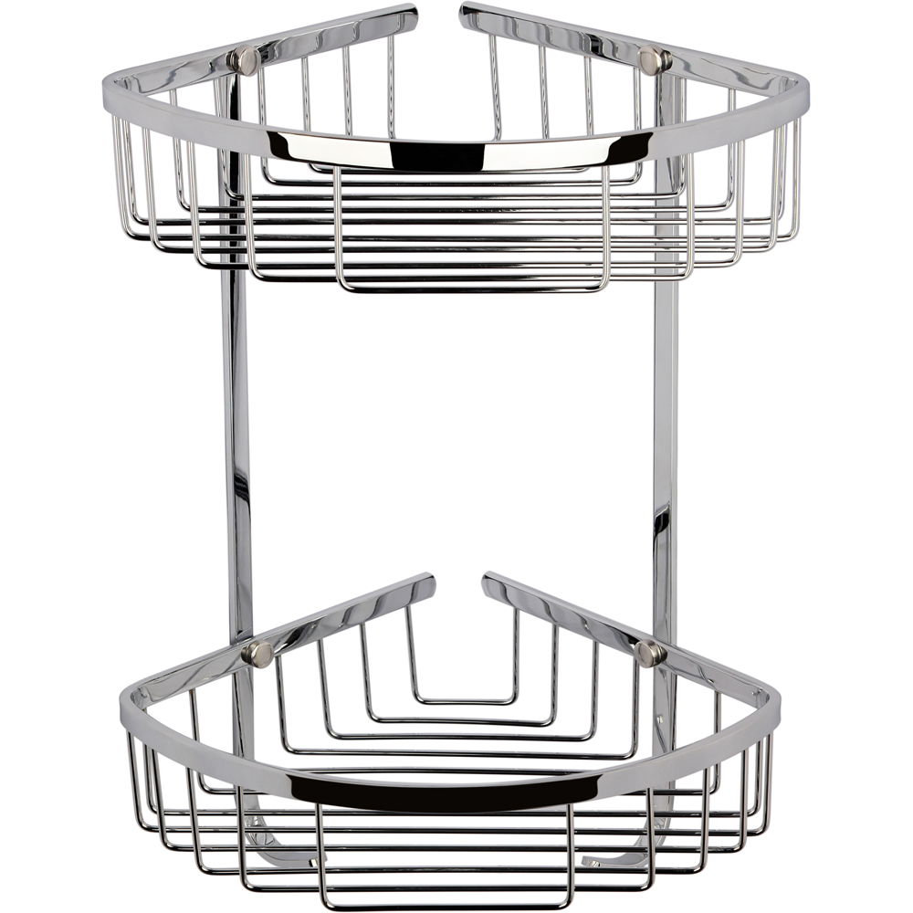 Organise your bath accessories in style with the nuie Chrome Wirework Large 2 Tier Corner Basket. Designed to maximise space, this stylish corner basket is perfect for neatly storing your toiletries and essentials. Featuring a luxurious chrome finish, it offers a reflective appearance that brightens up any bathroom décor. The two-tier design ensures you have adequate storage while fitting snugly into the corner, saving valuable floor space. Its open wire construction allows for easy drainage and quick drying, keeping your items clean.